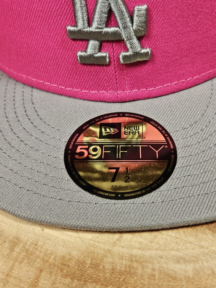 The Los Angeles Dodgers New Era 59Fifty Fitted Hat Cap is a baseball cap made for men. It is a size 7 1/2 and features the team's logo, the Angel, on it. The cap is officially licensed by the MLB and is perfect for any baseball fan.
