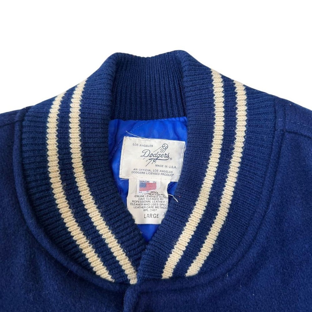 Los Angeles Dodgers stadium jacket made in USA 80s~ Key Features - Vintage Los Angeles Dodgers stadium jacket from the 1980s, made in the USA. - Rare wool and leather combination, in excellent condition. - Classic varsity style with detailed measurements: Length approx. 63cm, Width approx. 64cm, Shoulder approx. 53cm. Item Specifics: Brand: Los Angeles Dodgers Type: Stadium Jacket Material: Wool, Leather Made in: USA Decade: 1980s Condition: Excellent, Vintage Specifications Brand MLB Country Japan Department Men Size S Size Type Regular Style Jacket Type Jacket Product Description 🌎 Shipping & Import Duties For U.S. Buyers: Shipped via DDP (Delivered Duty Paid) . All import duties and taxes are included in the listed price. No extra payment is required upon delivery. For Non-U.S. Buyers: Shipped via DDU (Delivered Duty Unpaid) . Import duties and taxes may apply and are the buyer’s responsibility. We ensure safe packing and smooth customs clearance for all destinations.