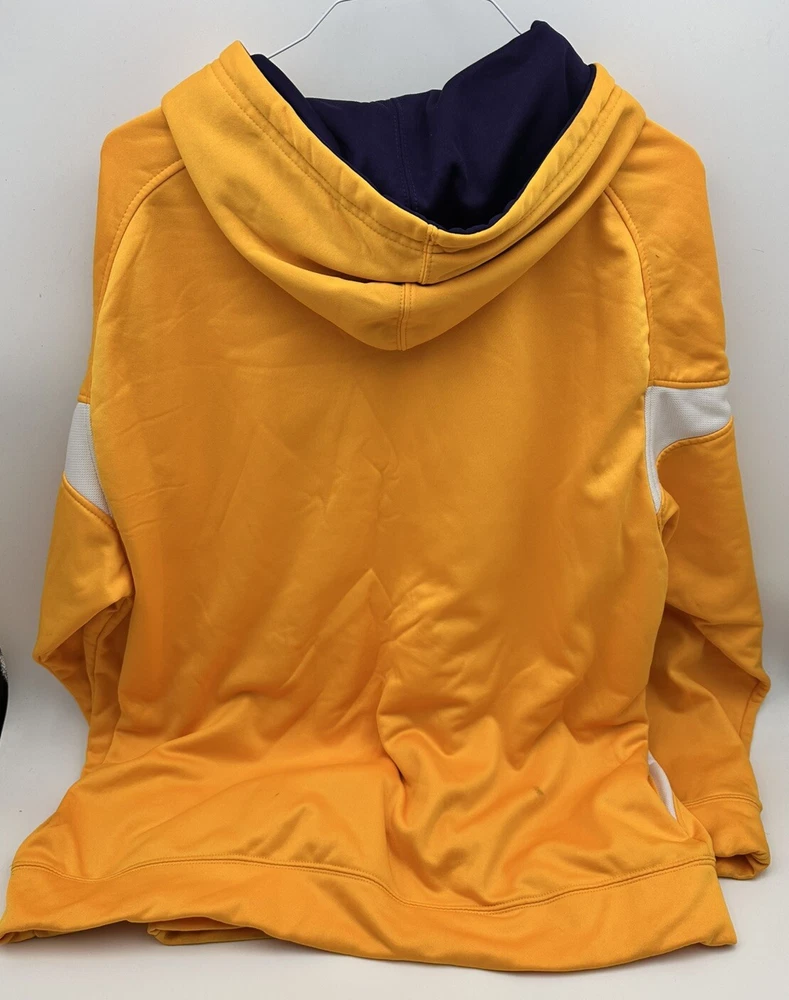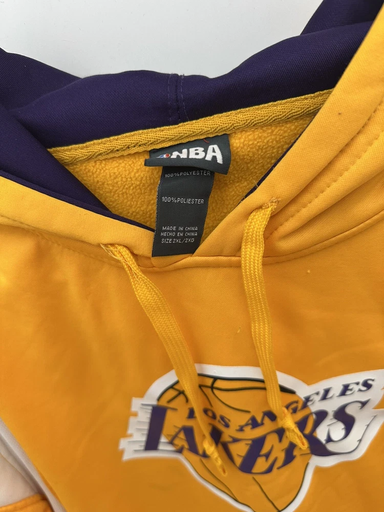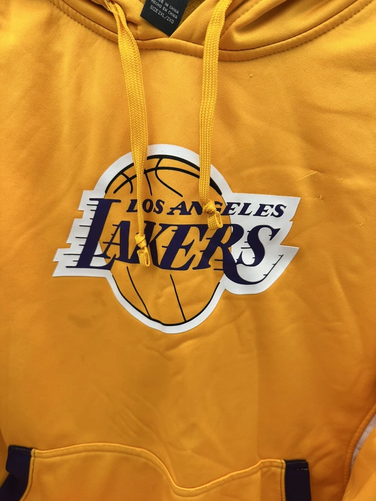 Show your support for the Los Angeles Lakers with this officially licensed NBA pullover hoodie sweatshirt. The gold color and 2XL size make it the perfect addition to any fan's collection. Represent your team during regular season games or simply lounge around the house in this comfortable sweatshirt. Made for men and designed with the team's colors and logo, this sweatshirt is perfect for any basketball fan. Whether you're cheering on your favorite players or simply showing off your team spirit, this sweatshirt is a must-have. Get yours today and show your support for the Los Angeles Lakers!