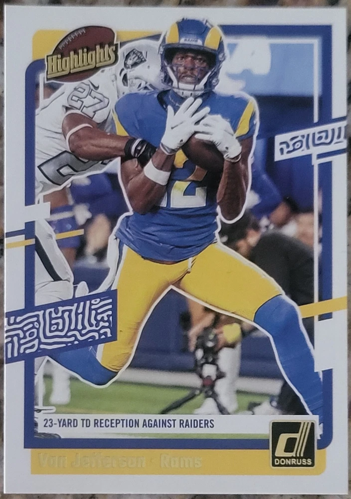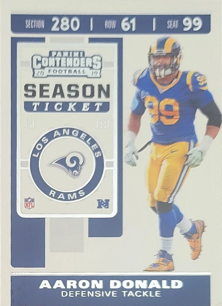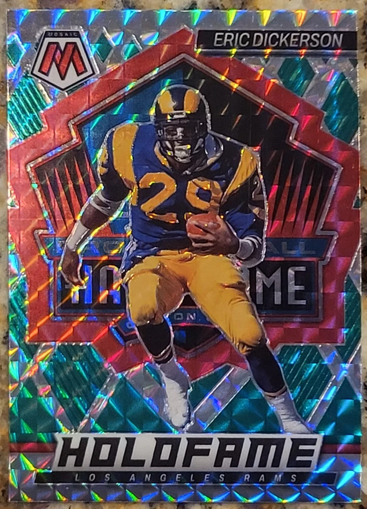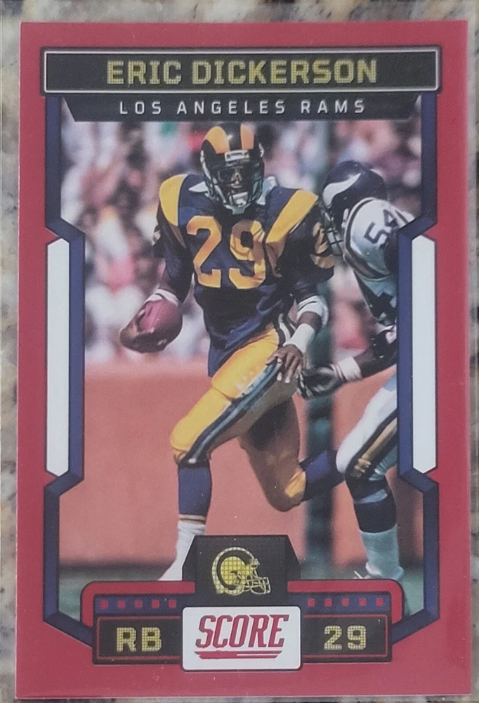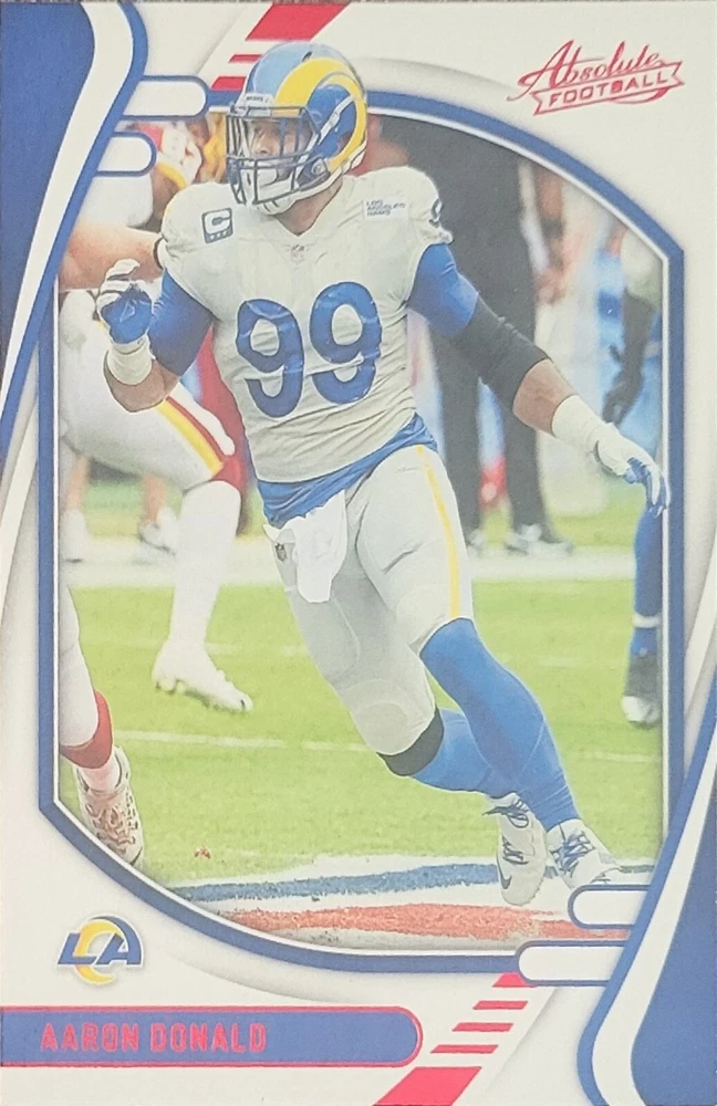 Get your hands on these amazing Los Angeles Rams Football Cards featuring the legendary Eric Dickerson, Matthew Stafford, and Aaron Donald. With a variety of sets and manufacturers, you can choose your own cards from the base set, rookie cards, and insert cards. The cards are made of high-quality card stock and come in standard size. These cards are perfect for any NFL fan and collector, especially those who support the Los Angeles Rams. Each card features a different player and is a great addition to any collection. Whether you're a fan of the Stafford era or the Donald era, these cards are a must-have. Don't miss out on the opportunity to own a piece of Rams history.