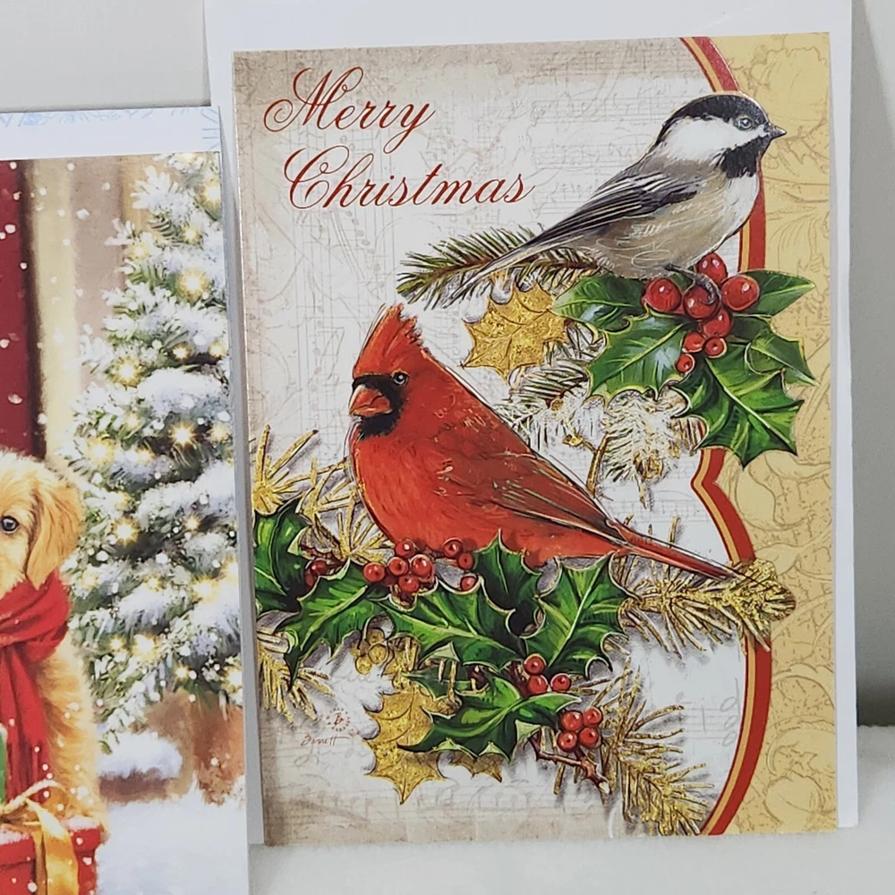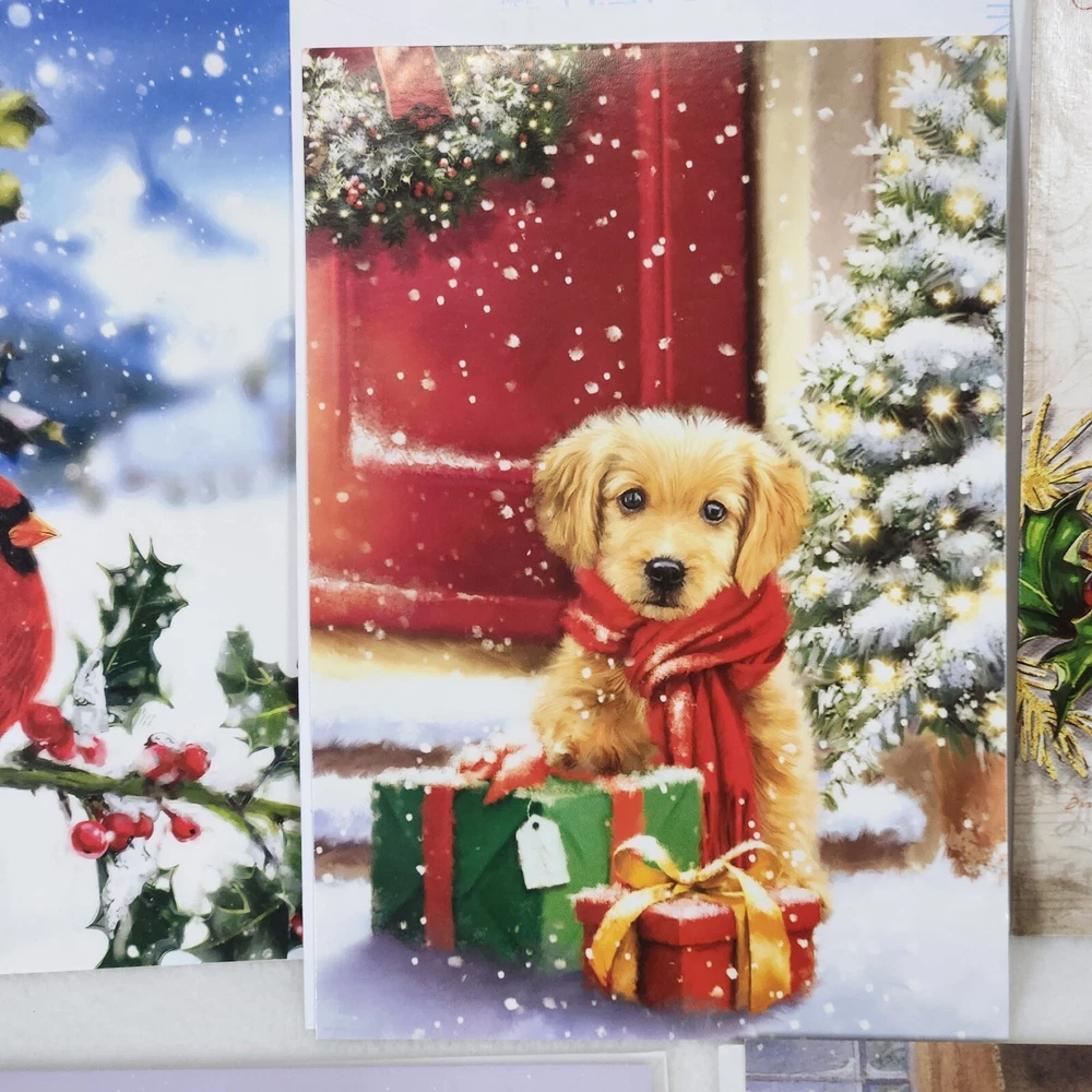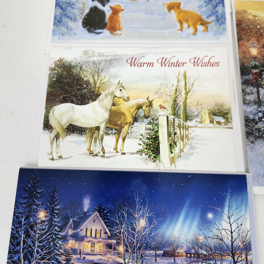 Lot (10) Animal Bird Theme Christmas Greeting Cards+Env~Dogs~Cardinal~Horse~Bear Various makers and artists. Lightweight cards and envelopes.