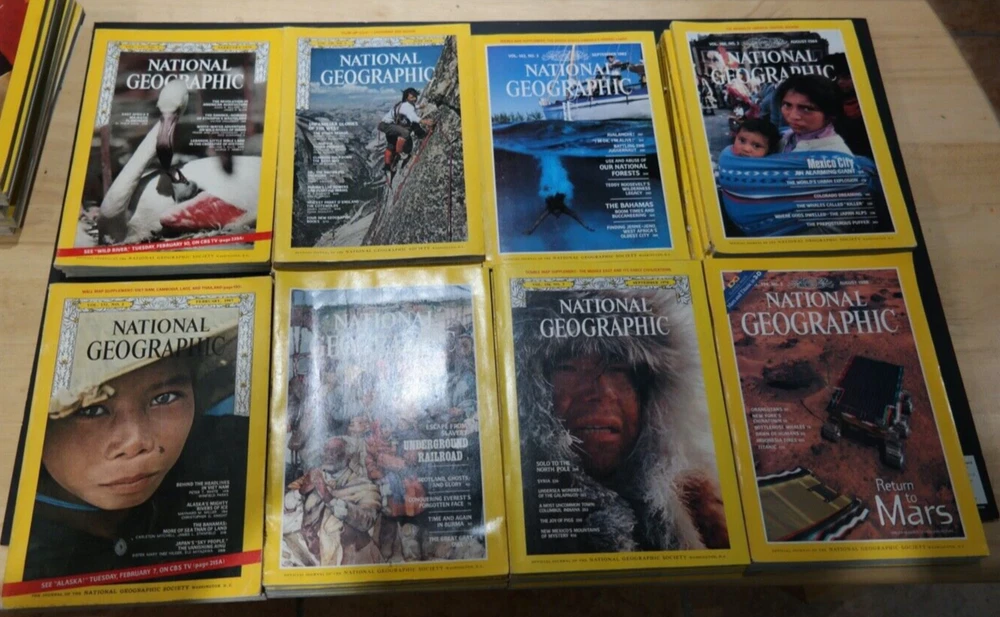 Explore the world with this amazing National Geographic Magazine! This monthly publication is a treasure trove of knowledge and inspiration for anyone interested in geography, history, nature, culture, and science. With a focus on captivating stories and stunning visuals, this magazine is sure to transport you to different corners of the world and keep you engaged from cover to cover.Featuring articles written by renowned authors and photographers, this magazine is a must-read for anyone who wants to expand their knowledge and appreciation for the world around them. Whether you're a history buff, a nature enthusiast, or a cultural explorer, this National Geographic Magazine has something for everyone. So why wait? Add this incredible resource to your collection today! I have thousands of magazines from 1960s to 2000s most are in great condition I will pick 12 at random try to get a few from all decades from 1960s to 2000s.IF YOU ARE LOOKING FOR A SPECIFIC ISSUE MESAGE ME AND WE CAN WORK SOMETHING OUT.