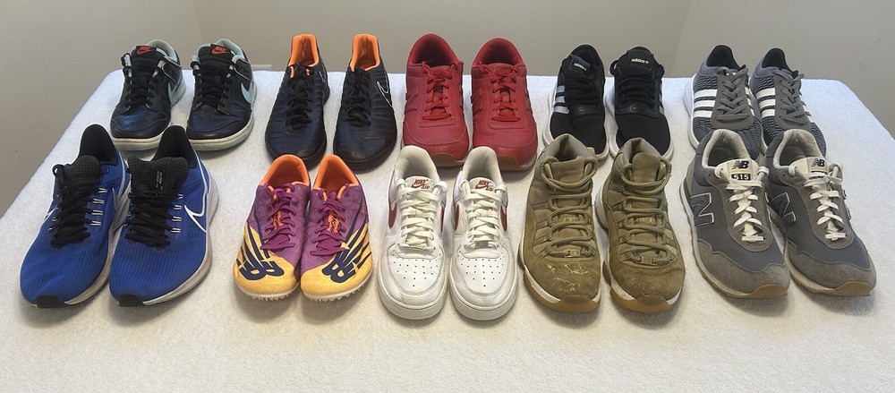 Lot 10 Pairs Of Athletic Shoes Bulk Wholesale Reseller Hoka Brooks Nike Saucony Reebok Adidas Jordan Mixed Sizes The shoes pictured in this listing are an example of some of the lots available. An order placed will not include this specific mix of men’s shoes. All Shoes in Great Condition with Ample Margin For Resale Free Shipping