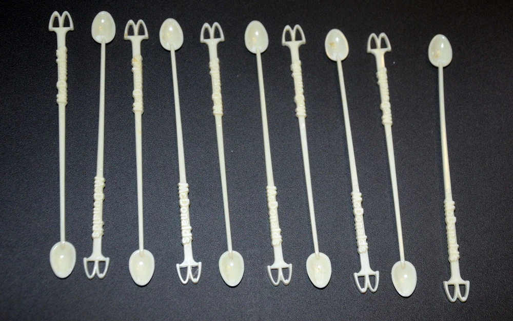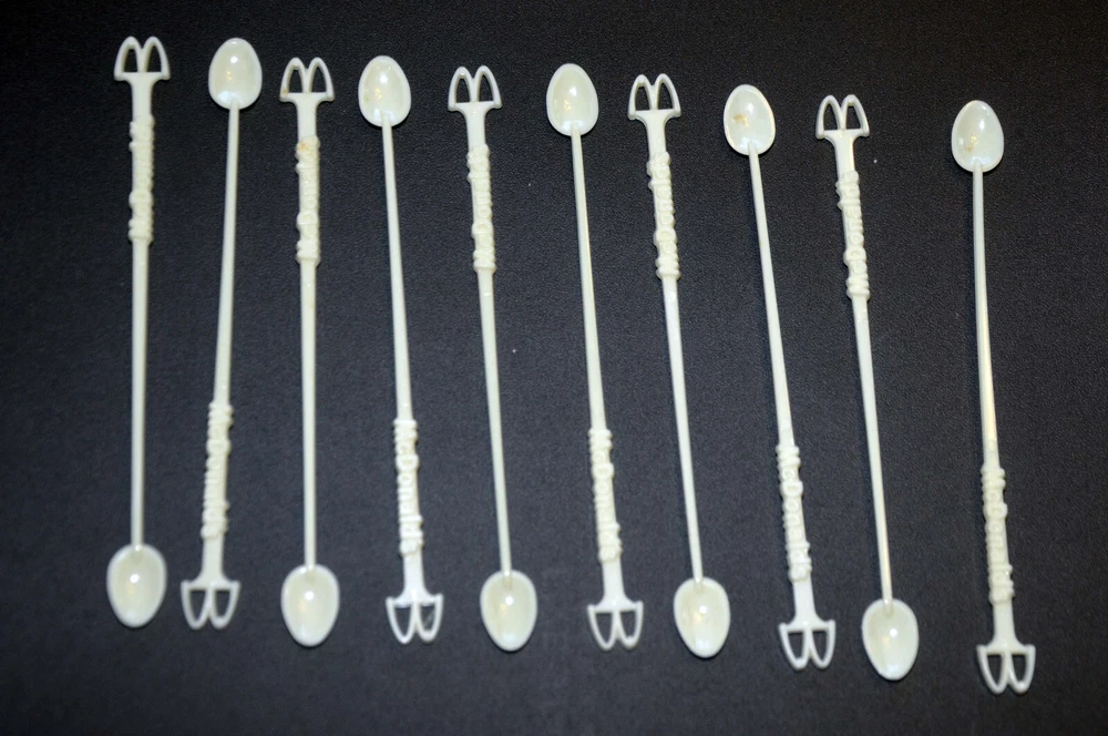 This sale is for a lot of 10 McDonald's discontinued McSpoon coffee stirrer spoons. They are in great shape. Domestic shipping for this lot will be $3.00. Good Luck.