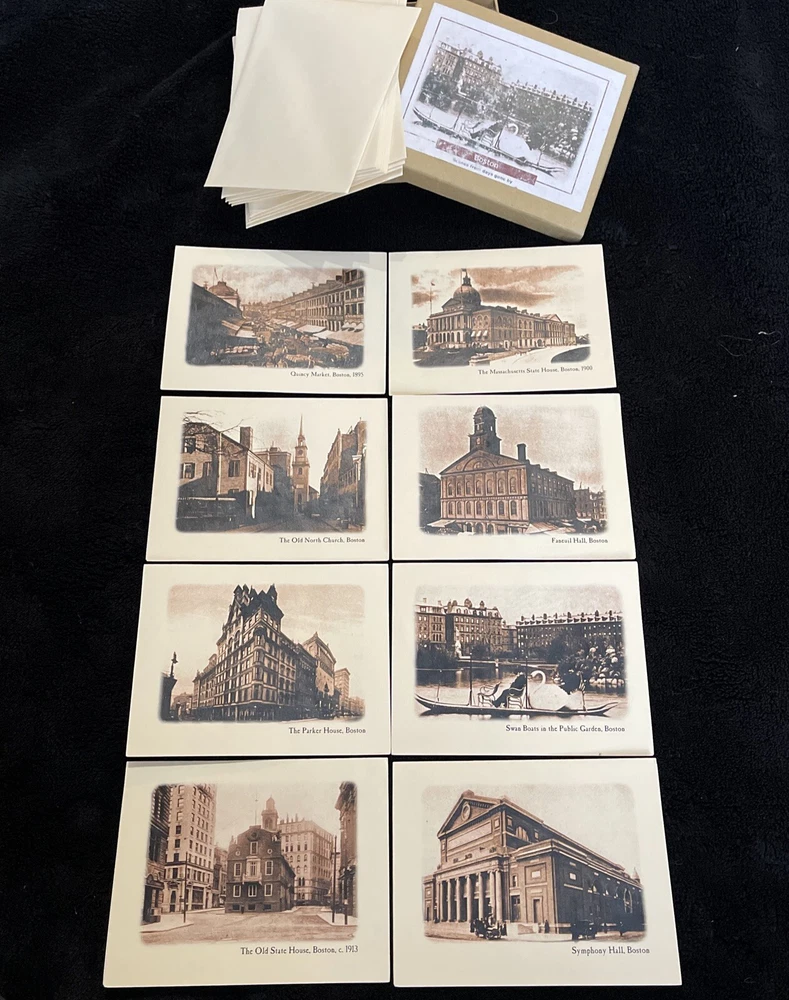 What a great lot of various landmark note cards of historical Massachusetts!! Each box contains 8 blank cards and 8 envelopes. A really special lot of some amazing landmarks! Includes Newport RI as well!! Great condition!!