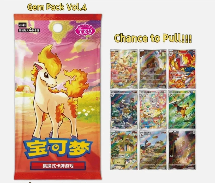 Nintendo Official Pokemon Chinese Products: Pokemon TCG S-Chinese Horizons Gemstone Gem Pack Booster Box vol 3+4 CBB3C CBB4C Sealed New Pull your Chinese EXCLUSIVE EEVEELUTIONS Alt Art today! Each pack contains 4 holo cards in different variant! Each card have 8 different holo variants! ON HAND! SHIPPING FAST! Pokémon TCG Chinese Horizons Gem Pack Booster Box | Factory Sealed | US Seller 🔥 Product Description: Discover the latest Pokémon TCG set with the Chinese Horizons Gem Pack Booster Box! This highly sought-after expansion, available in Simplified Chinese , introduces powerful new cards, stunning artwork, and exciting pulls for both collectors and competitive players. 📦 Box Contents: 1 Gem Pack vol 3 Sealed Booster Box The boxes is all new with Shrink Wrap. Contains 18 Booster Packs Each pack includes 4 cards Chase rare cards, including EX cards, Special Art Rares, and more! AND 1 Gem Pack vol 4 Sealed Booster Box Contains 18 Booster Packs Each pack includes 4 cards Chase rare cards, including EX cards, Special Art Rares, and more! ✨ Why Buy From Us? ✅ 100% Authentic & Factory Sealed ✅ Ships Fast from the USA 🇺🇸 ✅ Secure Packaging to Protect Your Cards 📌 Limited Stock – Order Now Before It’s Gone! 100% Nintendo authentic pokemon products ! Please note this is Chinese Version ! Chinese Pokemon Card has blue back like English version. 100% authentic nintendo products, made in Japan, released in China Mainland.
