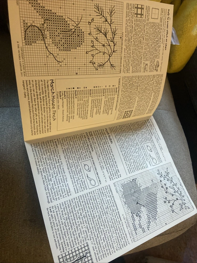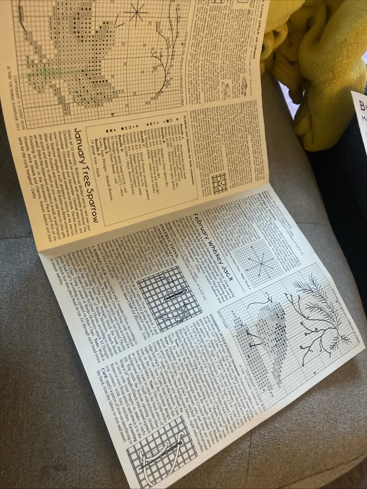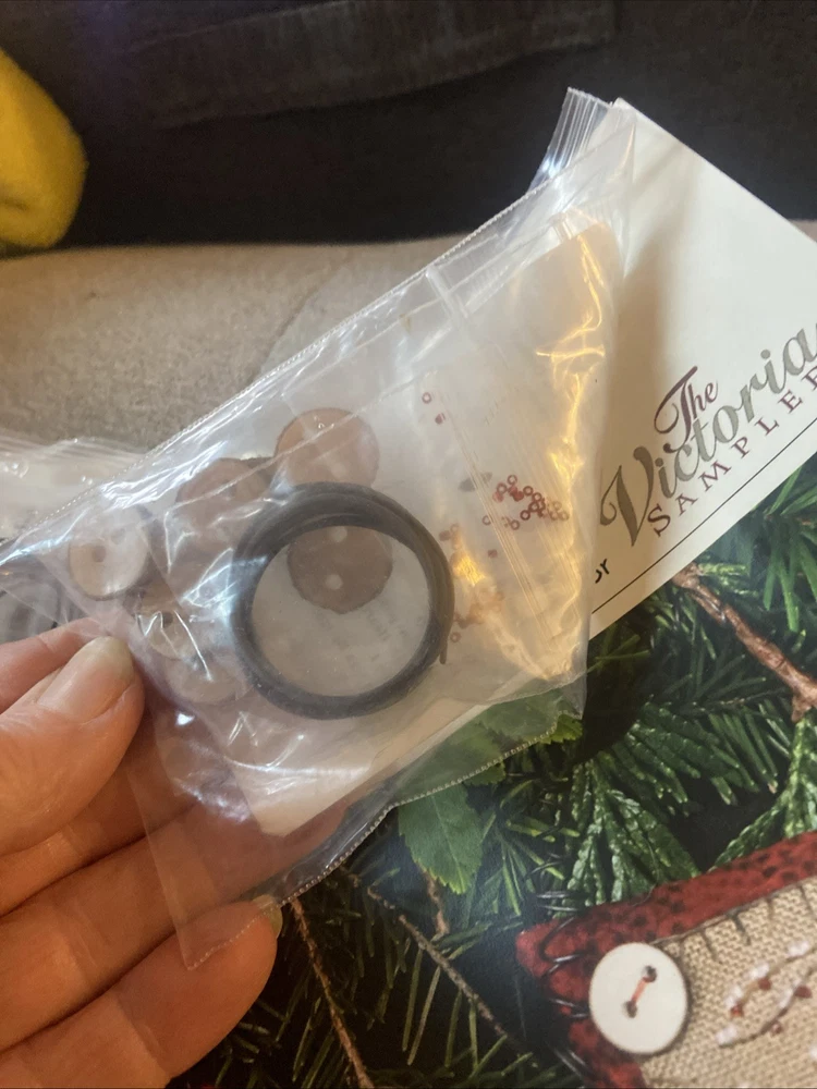 Two kits that are sealed with the pattern and the accessories for the button up birdies by Kathy Jean for the Victoria sampler. You will receive pattern number two and three with the accessory packs attached but I do believe one of this accessory packs might be missing something I’m not 100% sure unless all of the thread is in the first packplease see the photos of the two accessory packs and decide for yourself. These kids are sold as is in new condition and accessory packs are stapled to the patterns, but I’m not sure why there’s not thread in one of them.