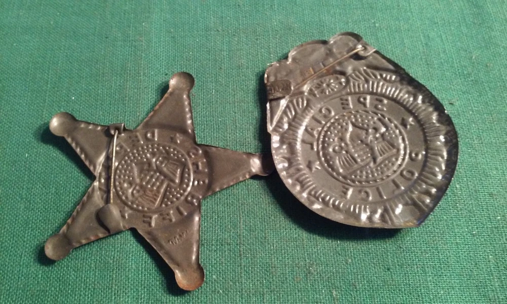 HomeLot 2 VINTAGE 1950's Tin Toy Western DEPUTY SHERIFF & Special Police Badge JAPAN