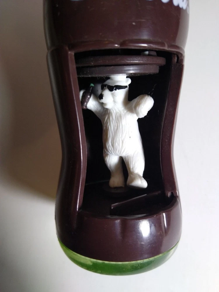 Lot of (2) vintage Burger King toys featuring the beloved Coca-Cola brand with spinning polar bear. Created in the year 2000 and are original pieces. The toys were manufactured in China and are multi-colored. They would make great additions to any collection of restaurant and fast food advertising memorabilia. LOT OF 2. Both are used condition and working. Scuffs to the top and plastic areas.