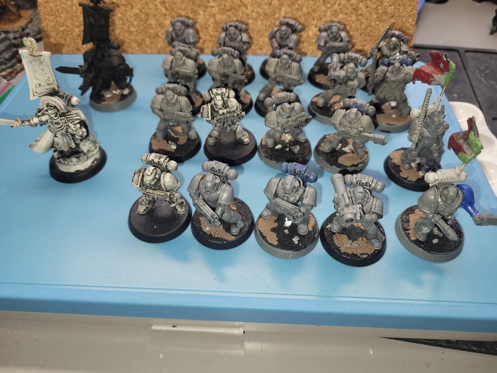 Cato Sicarius other 3rd captain 4 groups of 5 Marines, each with heavy weapon and Sargeant unit If you think my price is off, feel free to message me. I'm a reasonable human. Dive into the grimdark universe of Warhammer 40K with this expansive lot of 22 space marine miniatures, ready to bring the might of the Ultramarines to your tabletop battles. Each figure is meticulously crafted by Games Workshop, ensuring the finest detail and true-to-character representation of the iconic Space Marines. Enhance your gaming experience with a diverse array of characters and weapons, strategically designed to outmaneuver and defeat foes. Whether you're a seasoned commander or new to the field, this set promises to be a valuable addition to your Warhammer 40K collection.