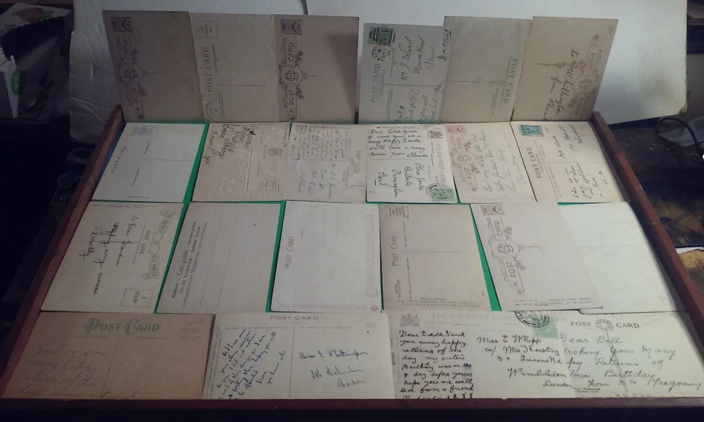 Fantastic Lot 22 of 1910's Antique Victorian Era Postcards People Women Children & Romance. Some European, Some Blank/Unposted, and some with notes and posted.
