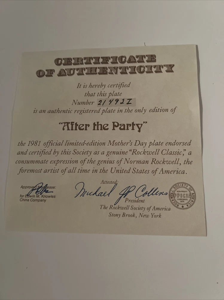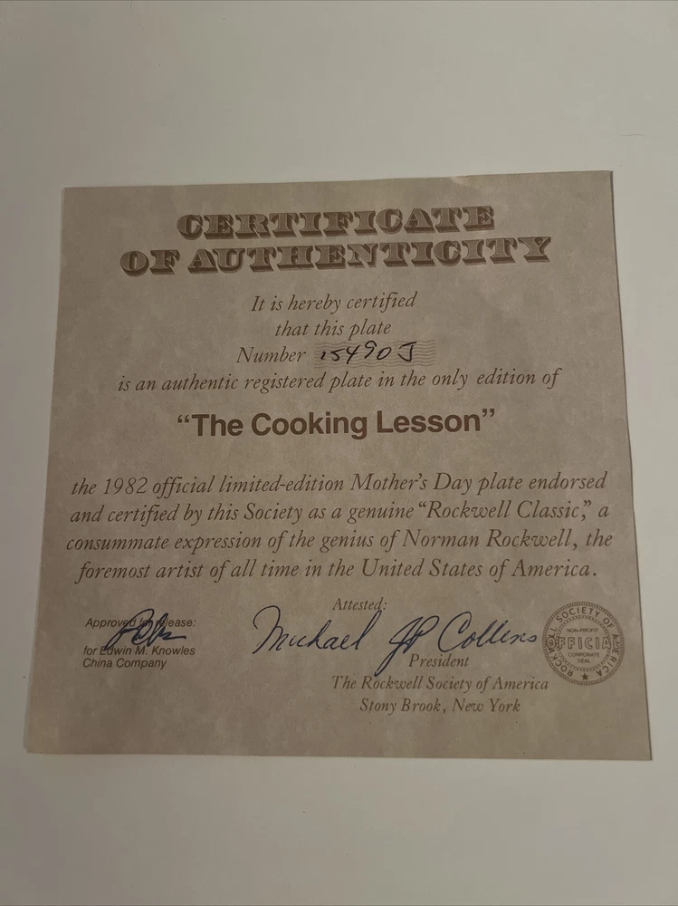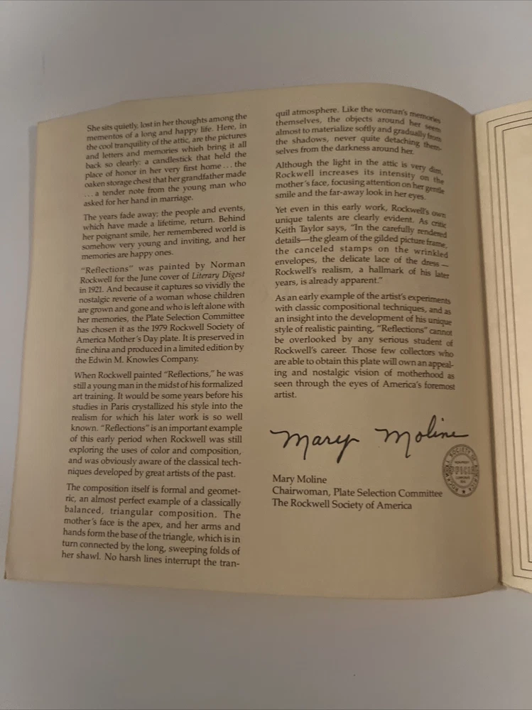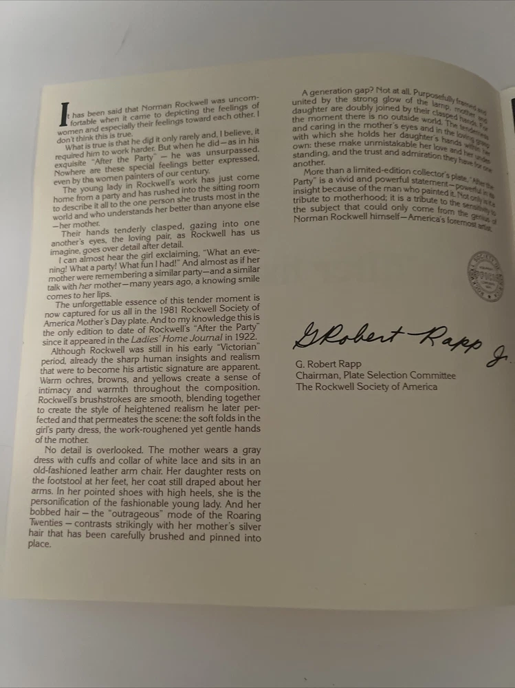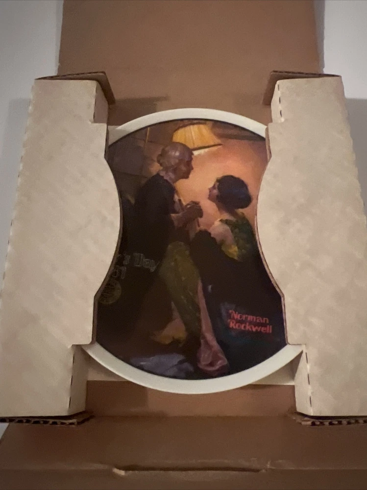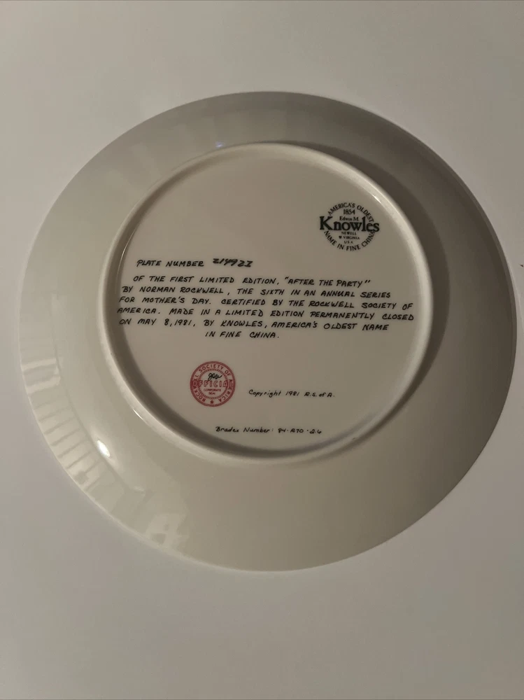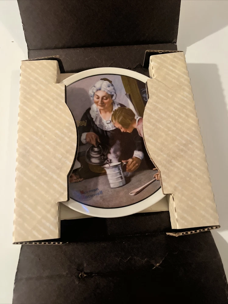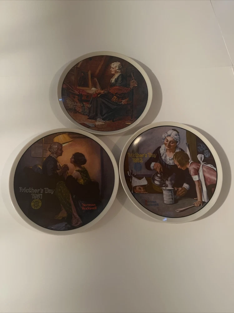 This collector plate set by Norman Rockwell is a lovely addition to any collection. The set includes three plates, each featuring a beautiful scene. The first plate depicts a cooking lesson, the second plate shows reflections and the third plate features after the party. The plates are made of high-quality porcelain, with a diameter of 6.5 inches. These plates are perfect for display or for use during special occasions. Add this beautiful set to your collection today!