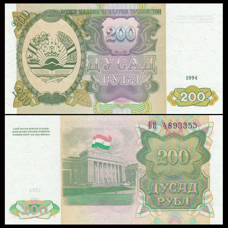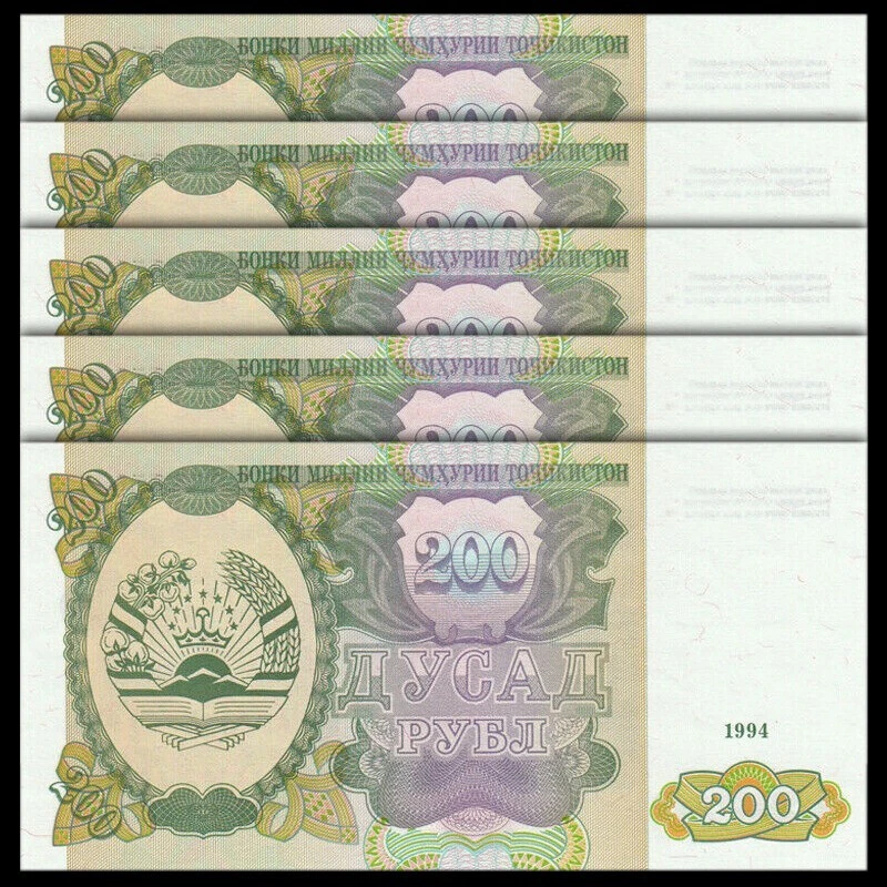 Lot 5 PCS, Tajikistan 200 Rubles, 1994, P-7, Banknote, UNC About US ------------------------------------ We are the biggest seller of real banknotes and coins in China started in 2008. We don't make copies.None copies in our store. About Notes & Coins ------------------------------------ The actual note may have a different serial number,signaturs and prefixs.Please use the image as a reference only. The notes and coins we sell are 100% real and UNC We can combine shipping for some items. We can provide Serial Number for lots notes. 100% Satisfaction Guranteed shipping ------------------------------------ we ship the item via USPS to USA ( 10-15 days for shipping), Via china-post to world( 10-30 days for shipping). Some remote area maybe take a little longer, Please be patient. we will ship out in 48 Hours after the payment is cleared. Feedback ------------------------------------ If there is a problem, contact us in advance, please don't leave negative/neutral feedback without communication. We'd appreciate the opportunity to work with you to ensure a successful transaction. Please feel free to E-mail us with any questions,We will respond in 24 hours .