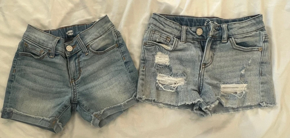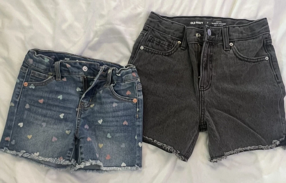 Lot of 7 Girl Denim Jean Shorts Size 6/7/8 some with Adjustable Waistband. 2 pairs of the blue old navy shorts are size 6, black and another blue old navy pair are size 7. two pairs are art class size 7/8 and the last pair is cat & Jack size small. FREE SHIPPING