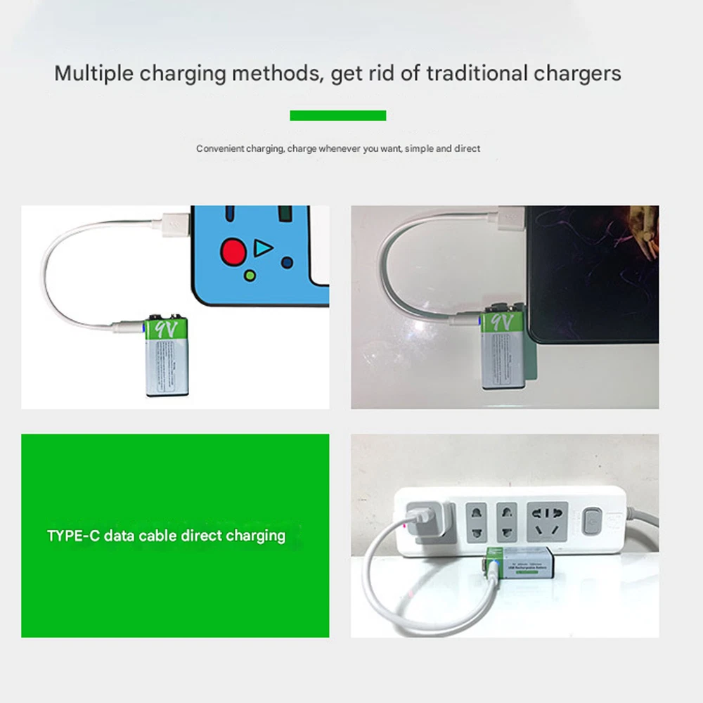 Lot 9V Rechargeable Batteries USB Lithium ion 1.5V Fast Charger Type C Cable Nst