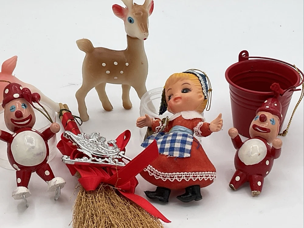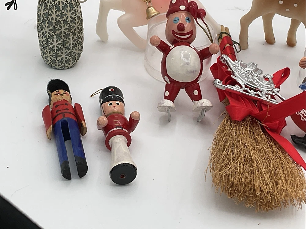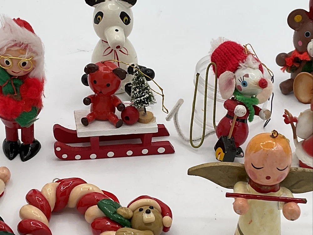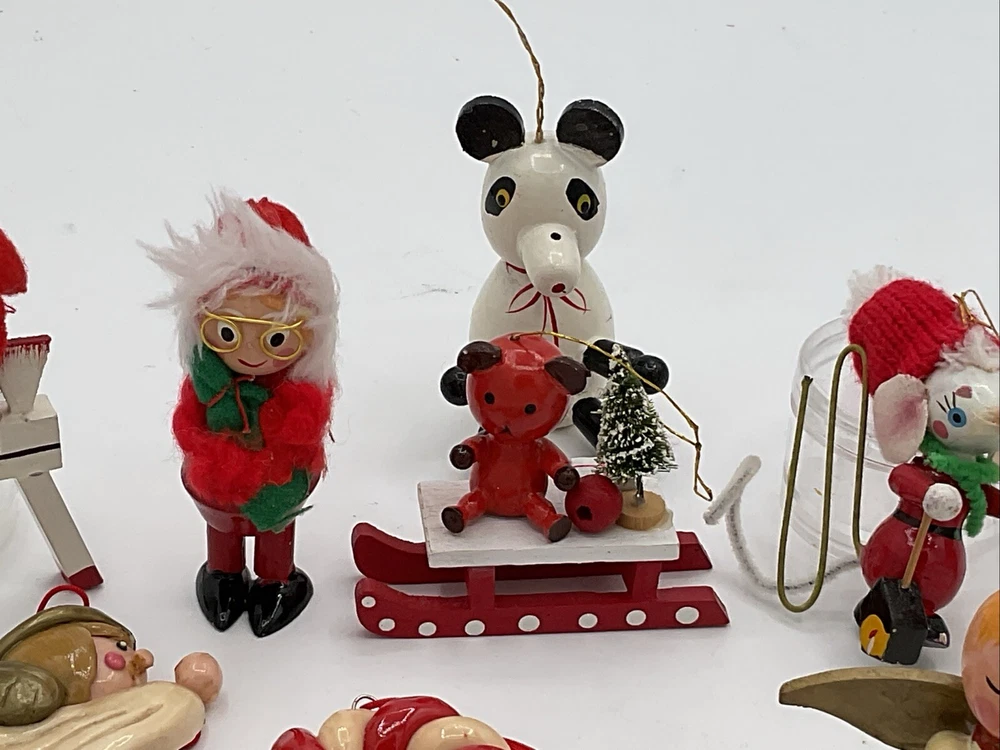 Lot Of 10 Vintage Christmas Ornaments Wood Animals Toy Soldier Deer Dutch Girl
