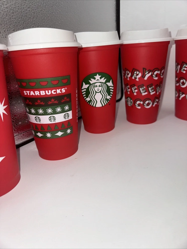 This lot of 12 Starbucks Christmas cups is a must-have for any coffee and tea enthusiast out there! These cups are perfect for enjoying your favorite hot beverage during the holiday season. Each cup is carefully crafted with intricate designs and details that truly capture the spirit of Christmas. Made by the renowned Starbucks brand, these cups are sure to impress collectors and customers alike. Whether you're a Starbucks fan or just looking for a unique addition to your collection, these Christmas cups are a great choice. So why wait? Add them to your cart today and enjoy the convenience of reusable cups.
