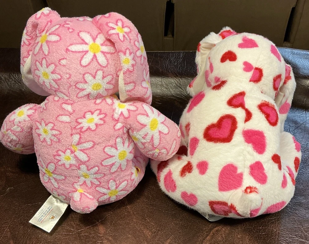Lot Of 2 Build-A-Bear Workshop Pink Floral Bunny Rabbit & Valentine Hearts Dog Plush stuffed animal 16" Bunny very good condition Dog like new condition Comes from a smoke free home