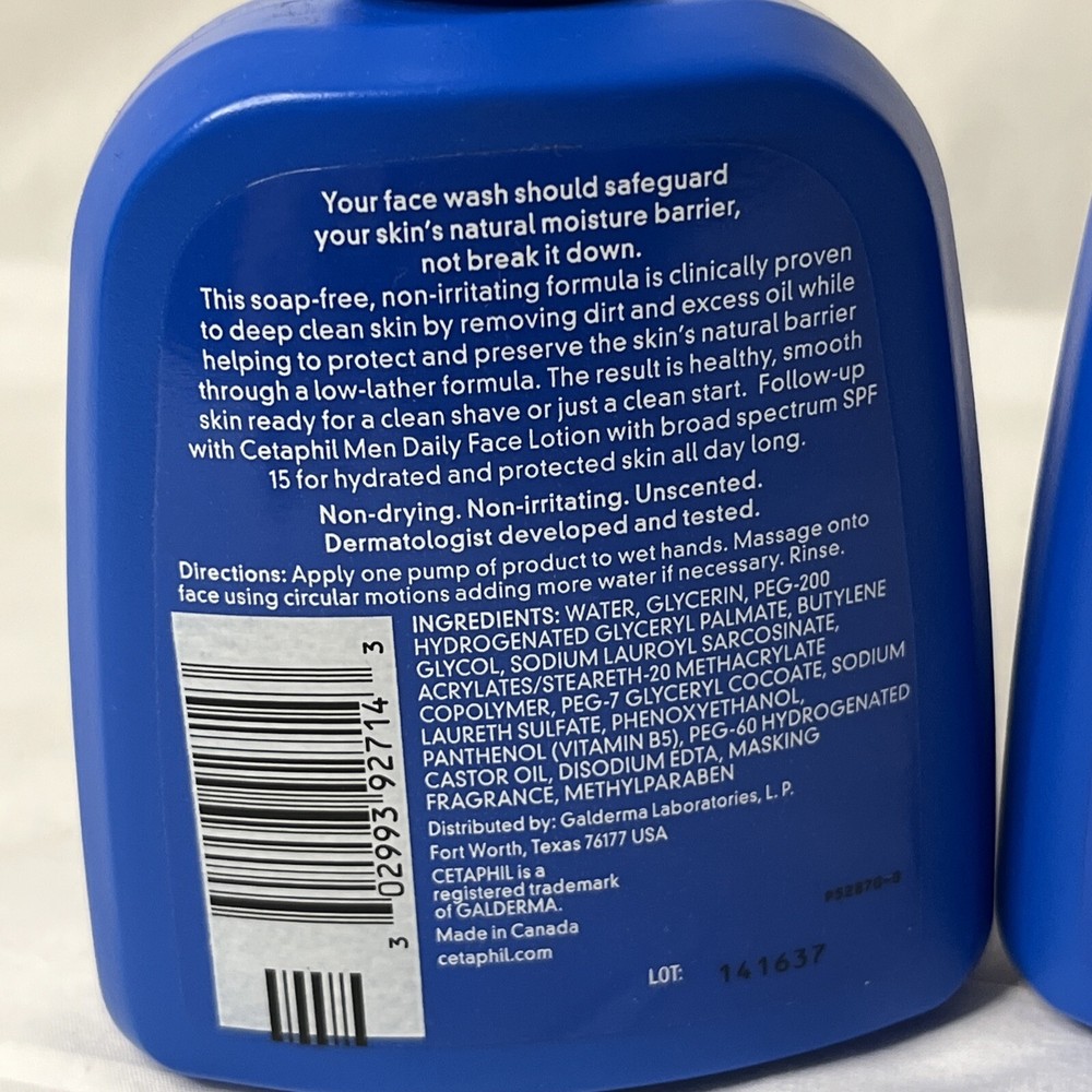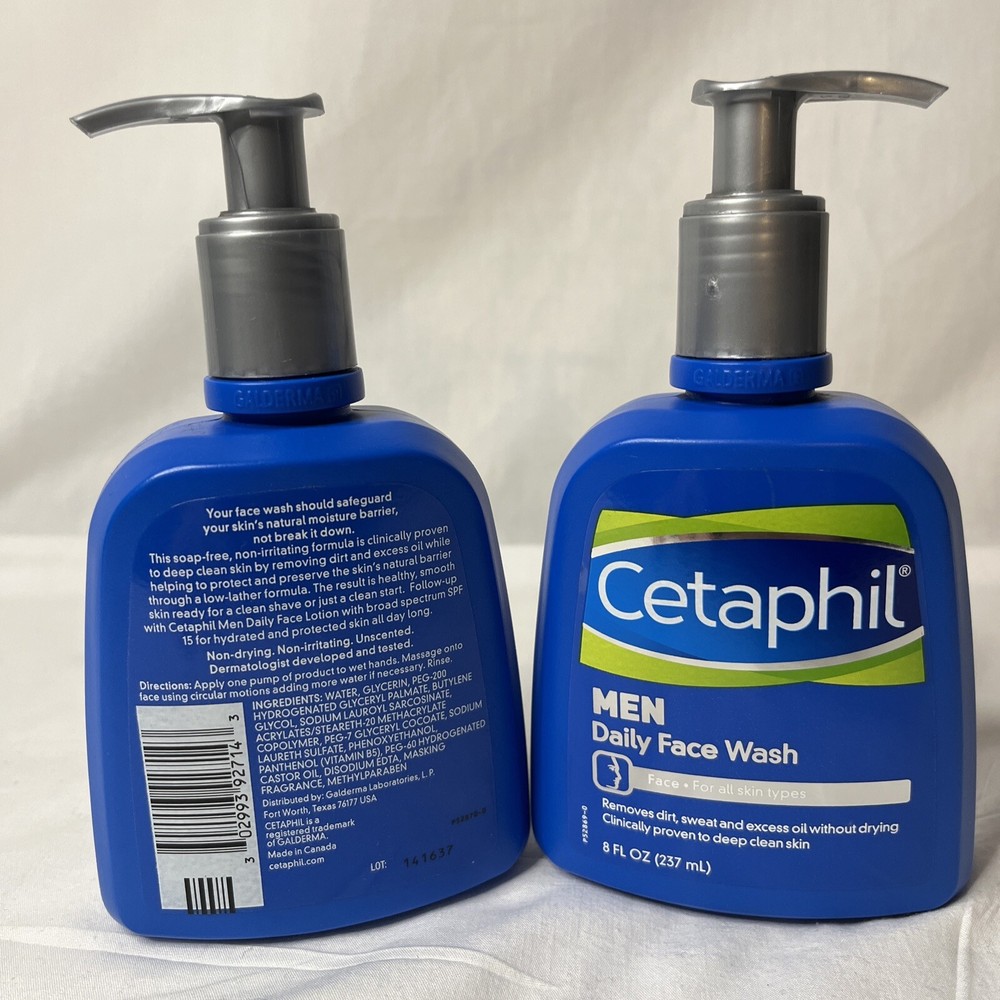 Lot Of 2! CETAPHIL MEN DAILY FACE WASH FOR ALL SKIN TYPES 8oz DEEP CLEAN.