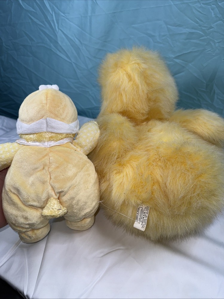 Lot Of 2 Ducks Carters Stuffed Plush Yellow Duck Rattle Toy 9" Fluffy Duck. Condition is Used. Shipped with USPS Ground Advantage.
