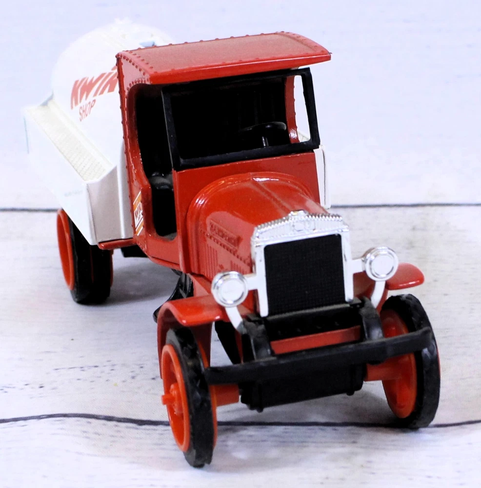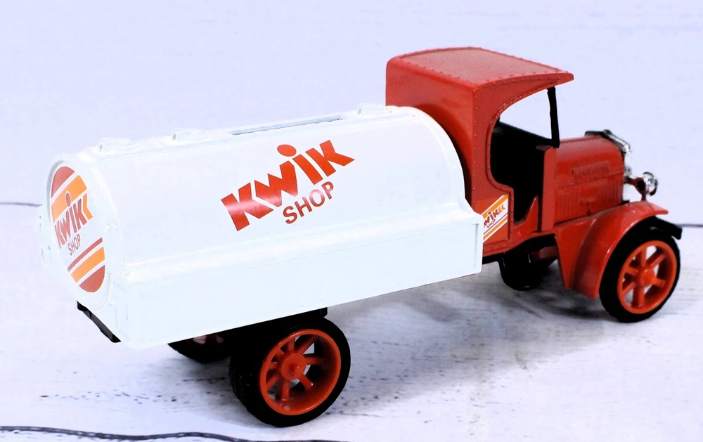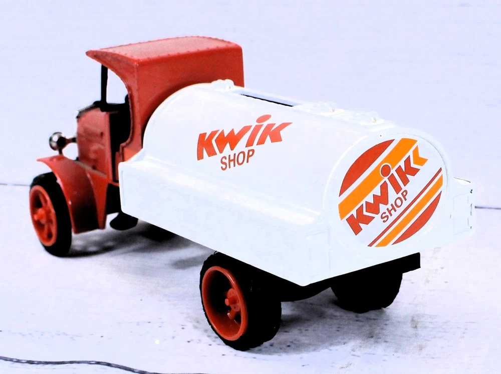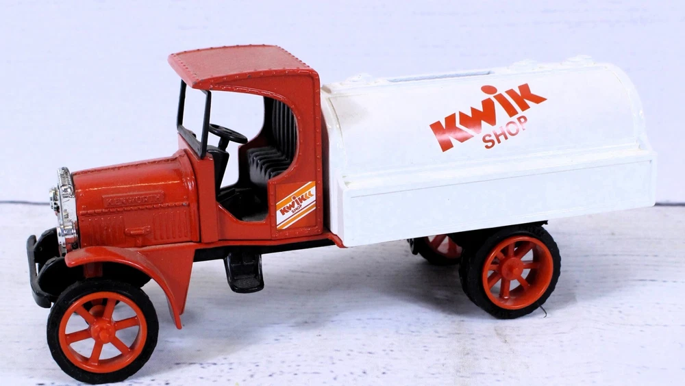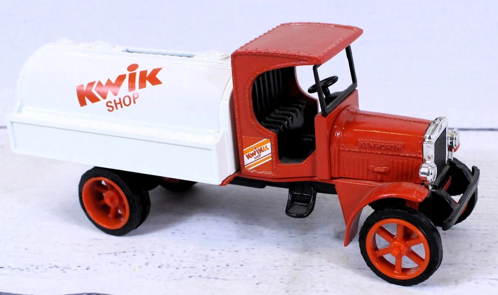 Scale: 1:34 Features: Coin Bank, Limited Edition Vehicle Make: Kenworth gtin13: does not apply Year of Manufacture: 1994 Material: Diecast Vehicle Type: Tanker Truck Model: 1925 Tanker Brand: Ertl Autographed: No Recommended Age Range: 8+ Country/Region of Manufacture: China Theme: Kwik Shop Color: Red UPC: does not apply Vehicle Year: 1925