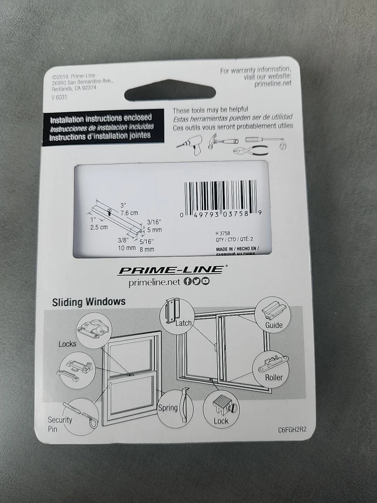 EAN: 0049793037589 Color: Steel Model: 3758 Package Dimensions LxWxH: 5.83x3.78x0.59 Inches UPC: 049793037589 Suitable For: Tilt Window gtin13: 0049793037589 Type: Does not apply Size: 5/8 in. Weight: 0.07 Pounds Item Length: 3" Item Width: 8mm or 5/16th Brand: PRIME-LINE Item Height: 5mm or 3/16th ISBN: 0049793037589