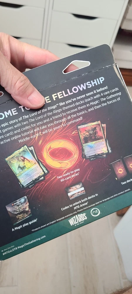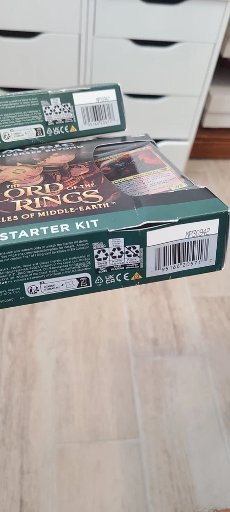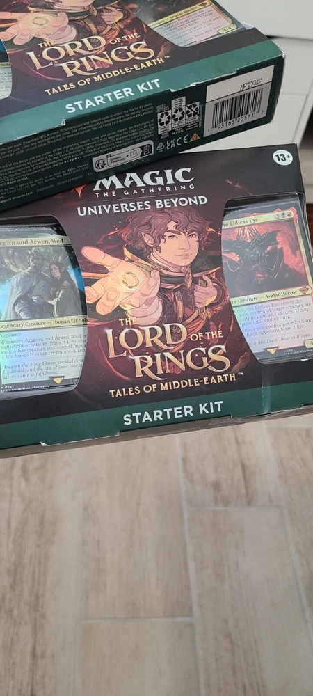 gtin13:0195166205717Manufacturer:Wizards of the CoastSet:The Lord of the Rings: Tales of Middle EarthNumber of Boxes:2 Starter DecksConfiguration:BoxFeatures:Starter DeckLanguage:EnglishAge Level:13+Card Size:StandardGame:Magic: The GatheringMPN:D15290000Character:Frodo BagginsMaterial:Card StockUPC:0195166205717Year Manufactured:2023