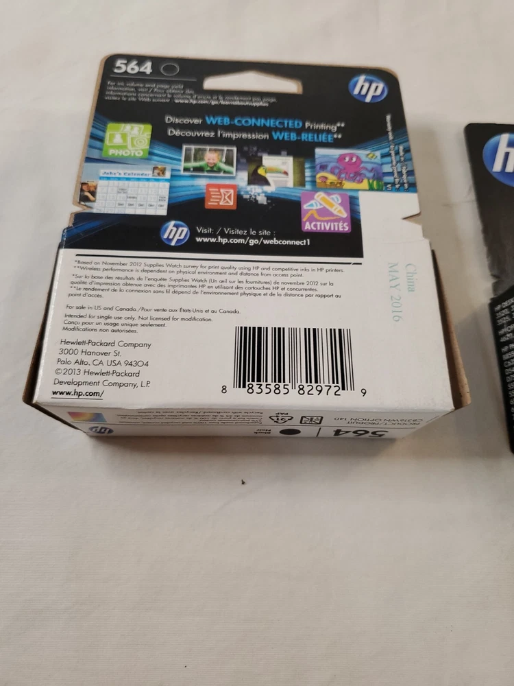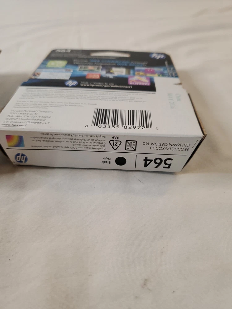 WILL SHIP IN A STURDY BOX. WE WILL COMBINE SHIPPING ON MULTIPLE ITEMS IF POSSIBLE. PLEASE CHECK OUT OUR OTHER ITEMS. THANKS FOR LOOKING. We ship 6 days a week. Most shipping is done with 24 business hour. We strive for excellent customer service. This is a new, genuine HP 564 Black OEM ink cartridge. It is a multi-pack that includes cyan, yellow, magenta, and black cartridges. These cartridges are compatible with HP printers and are designed for inkjet print technology. The expiration date for this pack is May 2016. The ink cartridges are suitable for use in printers, scanners, and other such devices. The pack is ideal for use in professional settings and is perfect for those who require high-quality prints.