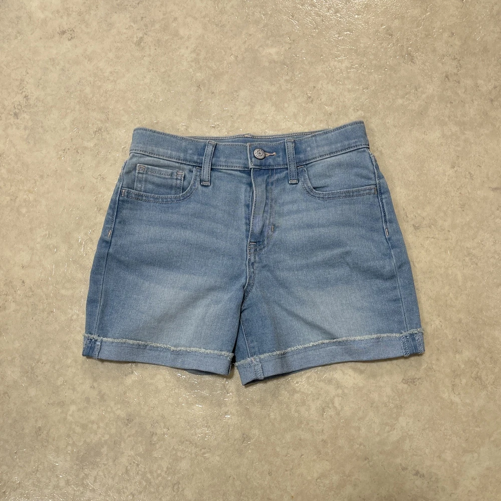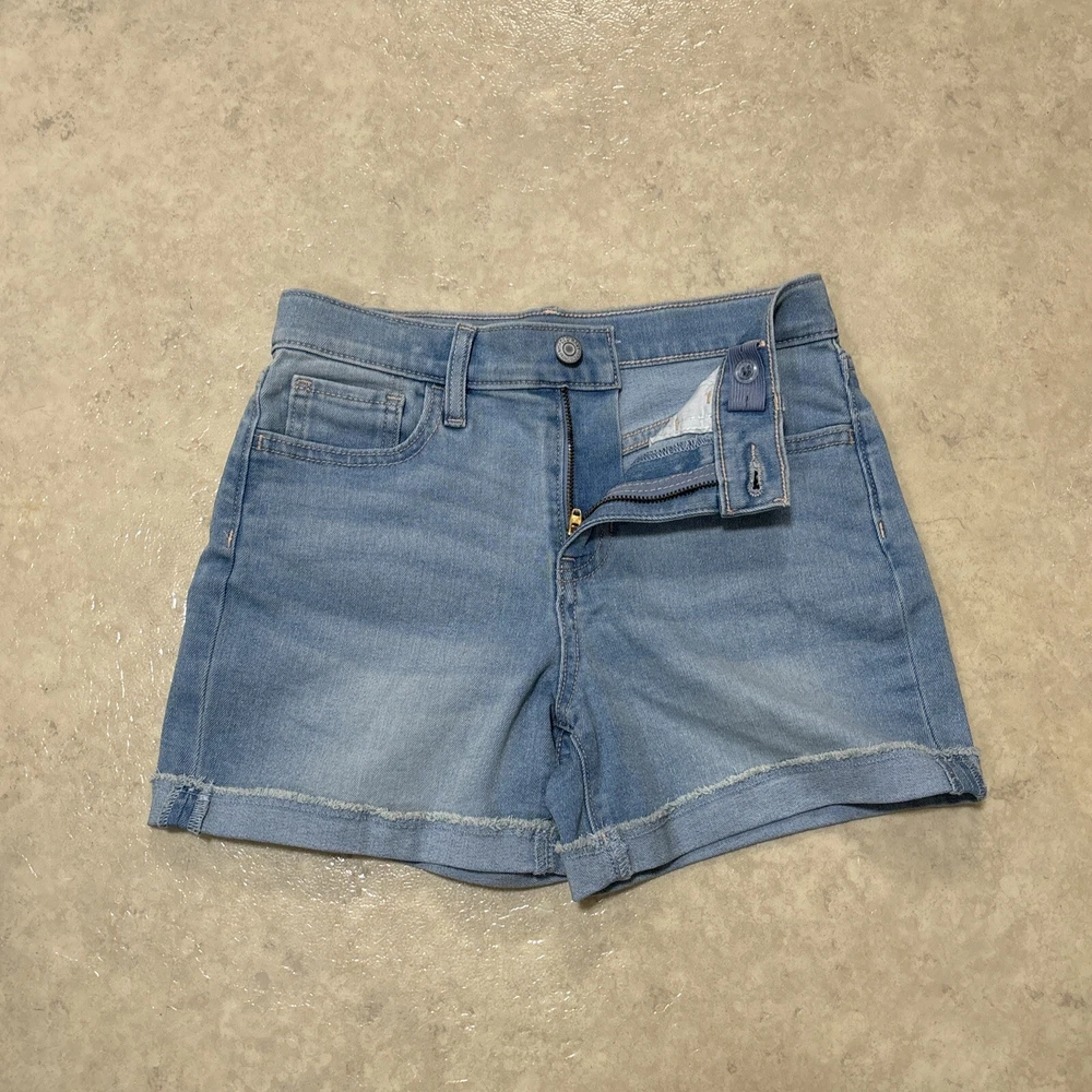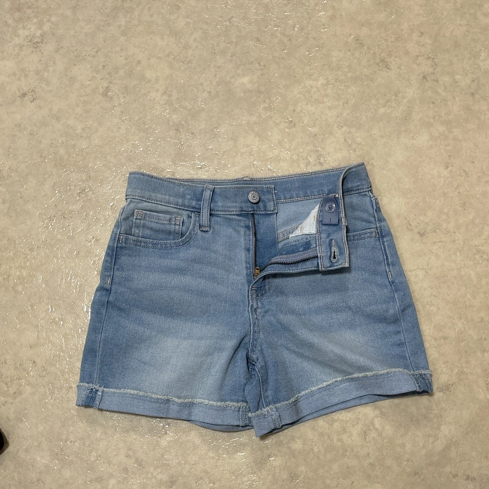 UPC: Does not apply Color: Blue - Black Garment Care: Machine Washable Occasion: Everyday, Casual, Travel Inseam: 3.5 in Style: Cut-Off Fabric Type: Denim & Blended Fabrics Department: Girls Brand: Old Navy gtin13: Does not apply Theme: Classic, American, City, Festival, Fun, Happy, Hipster, School Size: 12 & 10-12 Features: Adjustable Waist