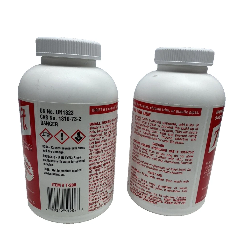 Lot Of 2, Thrift T-200 Drain Cleaner, 2 lb. Each 👀 NEW - AS PICTURED - IN ORIGINAL PACKAGING Item comes as shown and only includes what is shown in the photos Some items may have slight cosmetic wear which is noted in the condition of the part and can be seen in the pictures All reasonable Best Offers will be considered! Fast and FREE Shipping to the Lower 48 States in the USA- (Additional Charges May Be Required To Ship To Alaska, Hawaii or Puerto Rico, or Other US Territories) Please Contact Seller for a Shipping Quote 1 Day Handling on 99% of Shipments 30 Day Return Policy Se Habla Español Fully Guaranteed Customer Satisfaction is our goal . If you are unsatisfied please notify us so we can make this transaction 100% to your satisfaction. Thank you for looking and have a great Day! * * All Items are purchased in Surplus Auction's or Unclaimed Freight.**