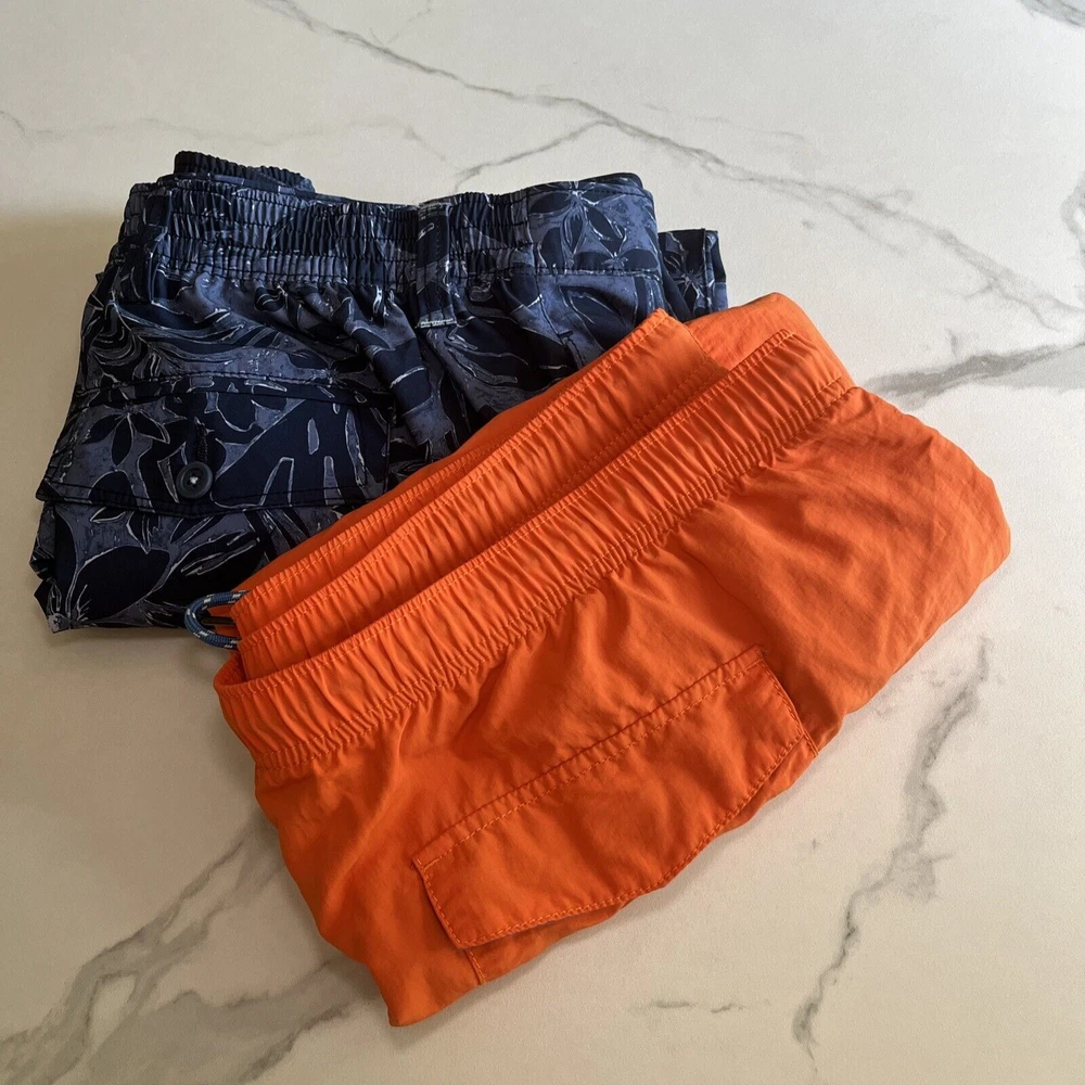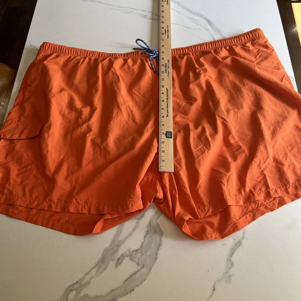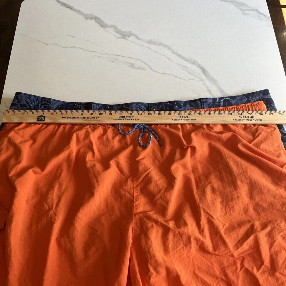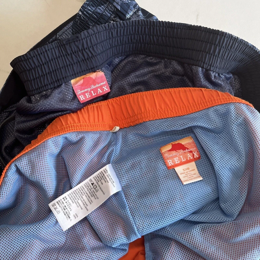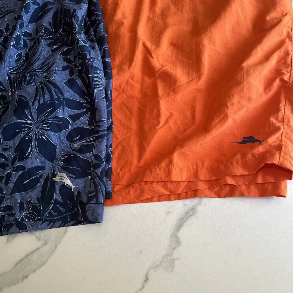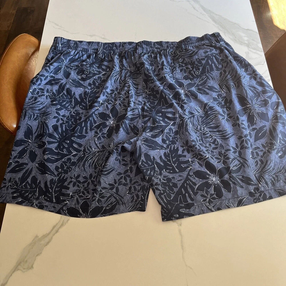 Elevate your beach look with these stylish Tommy Bahama Relax Swim Trunks. These shorts come in a solid blue color with a tropical floral pattern and are made of a blended fabric of polyester and spandex. The mesh lining provides a breathable and comfortable fit, while the elastic waist and drawstring ensure a perfect fit for any activity, whether it be surfing or just lounging by the pool. These trunks also feature a built-in brief, back pocket, and additional pockets to keep all your essentials safe. Perfect for a beach or pool day, these Tommy Bahama shorts will make you feel stylish and comfortable all day long. Excellent, preowned condition. See photos for measurements.