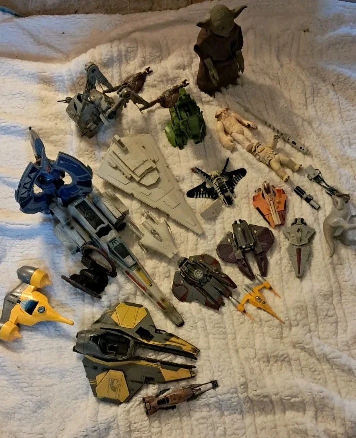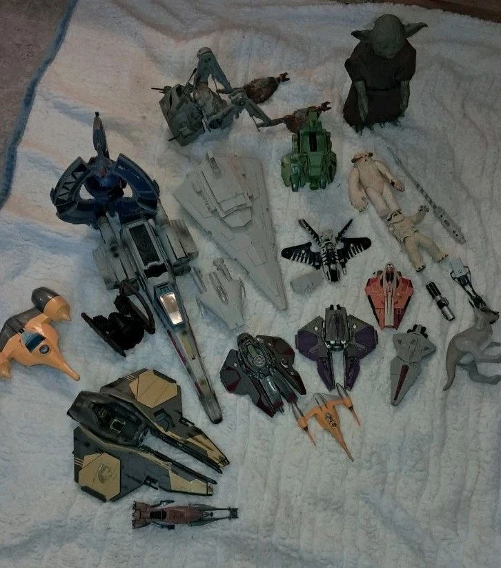 For parts/rebuilds lot. Nothing is really complete. Sold in as is condition. Dates range from 2005 and newer. By the looks these, there are several transformers, (not sure how they transform), and a couple are from a model kit. The yoda does not work.