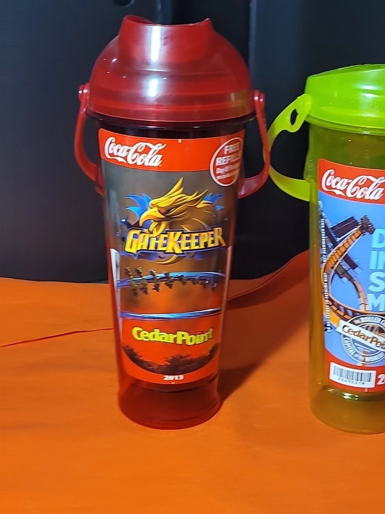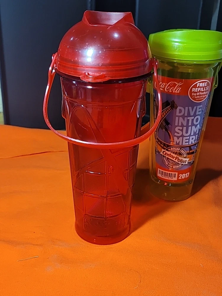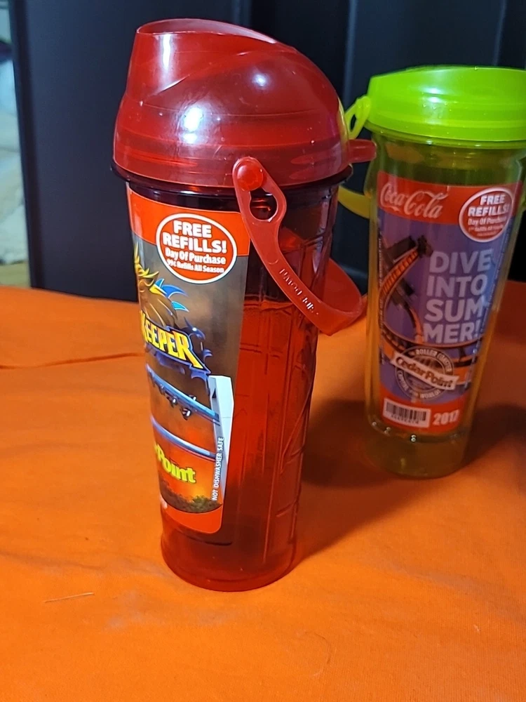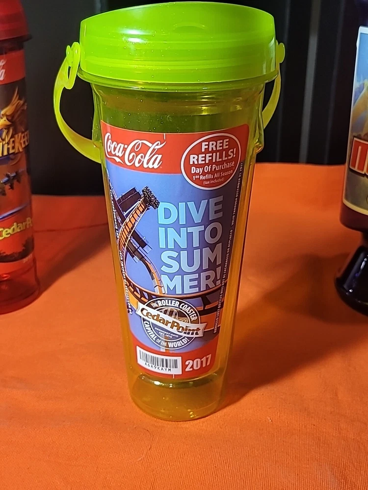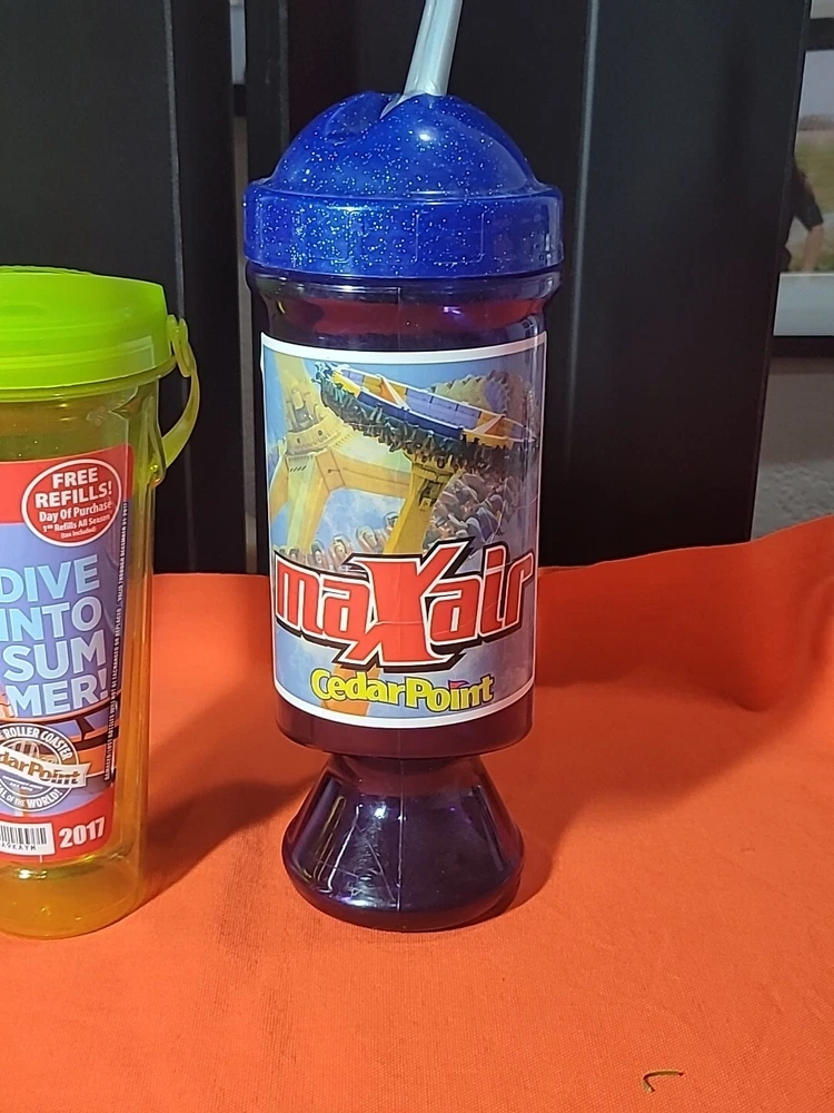 This lot includes three souvenir cups from Cedar Point's 2013 season, featuring the theme of Amusement Parks. These cups are perfect for collectors of historical memorabilia, or anyone who loves fairs, parks, and architecture. The cups are a great addition to any collection, and are sure to bring back fond memories of the 17th season of the park. Also included in this lot is a Max Air in Park refill, making it a great value for any buyer. Two of the cups are missing the straws thanks for looking