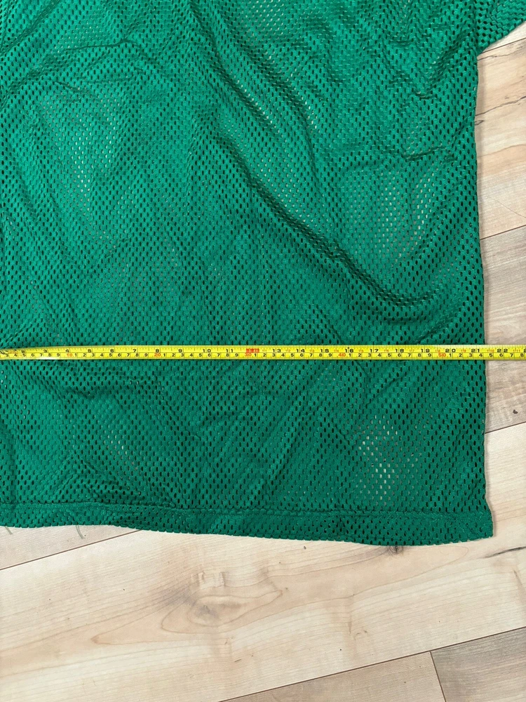 This lot includes three vintage retro men's jerseys in Kelly green color. Made of high-quality nylon material, these jerseys are perfect for collectors and fans alike. They are available in size large and feature a unique all mesh design. The jerseys are ideal for anyone looking to add a touch of vintage style to their wardrobe. With their bold and bright green color, they are sure to stand out in any collection.