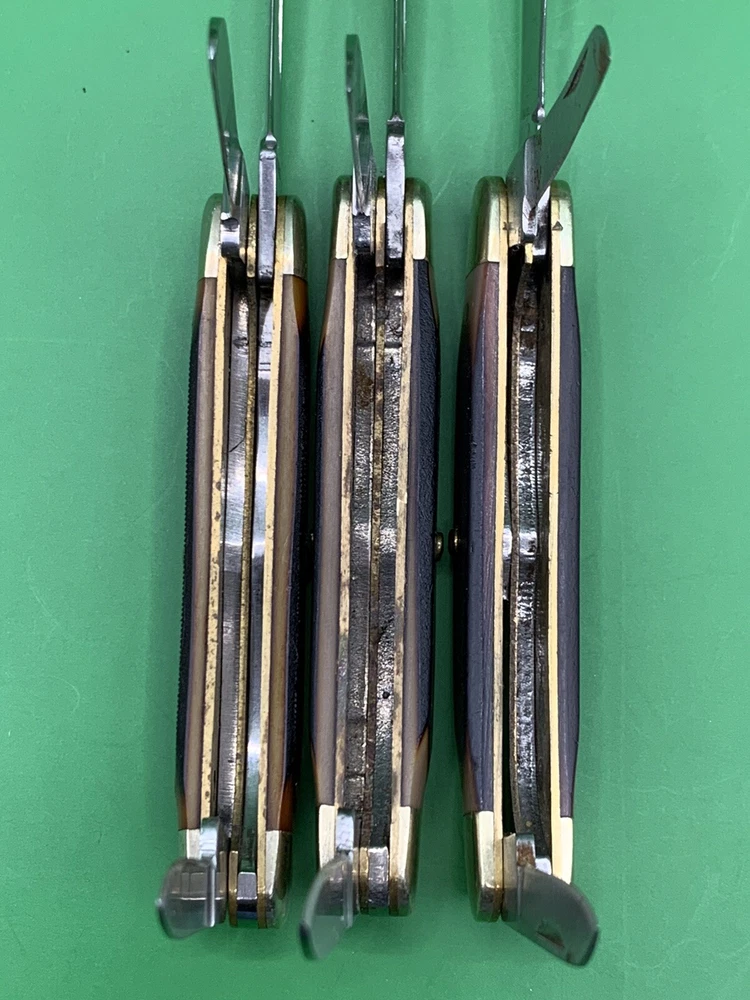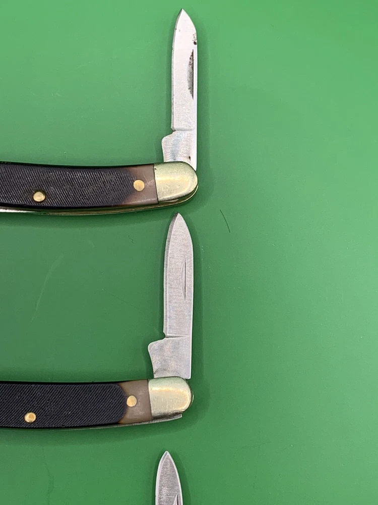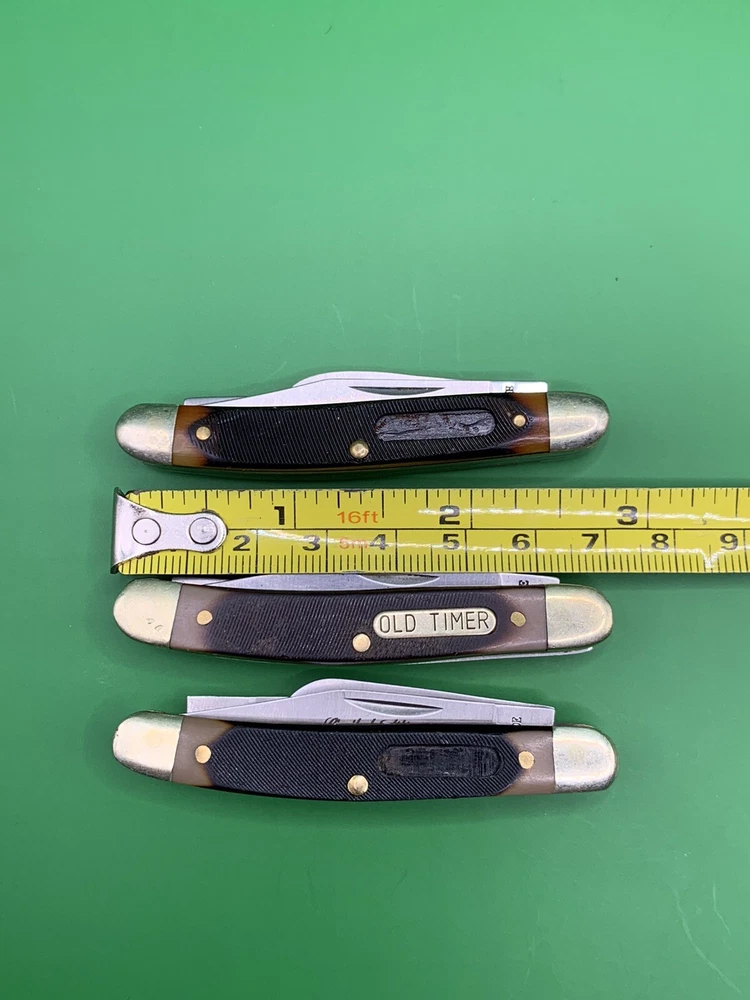 Lot of 3 Used Old Timer knife. One is a limited edition knife and all are in various conditions. They have some wear on the handles and the blades may need to be sharpened. One is broken on the back and they could all probably use some oil. See pictures for overall cosmetic condition. Sold as is. By purchasing you affirm that you are of legal age and aware of all applicable laws.