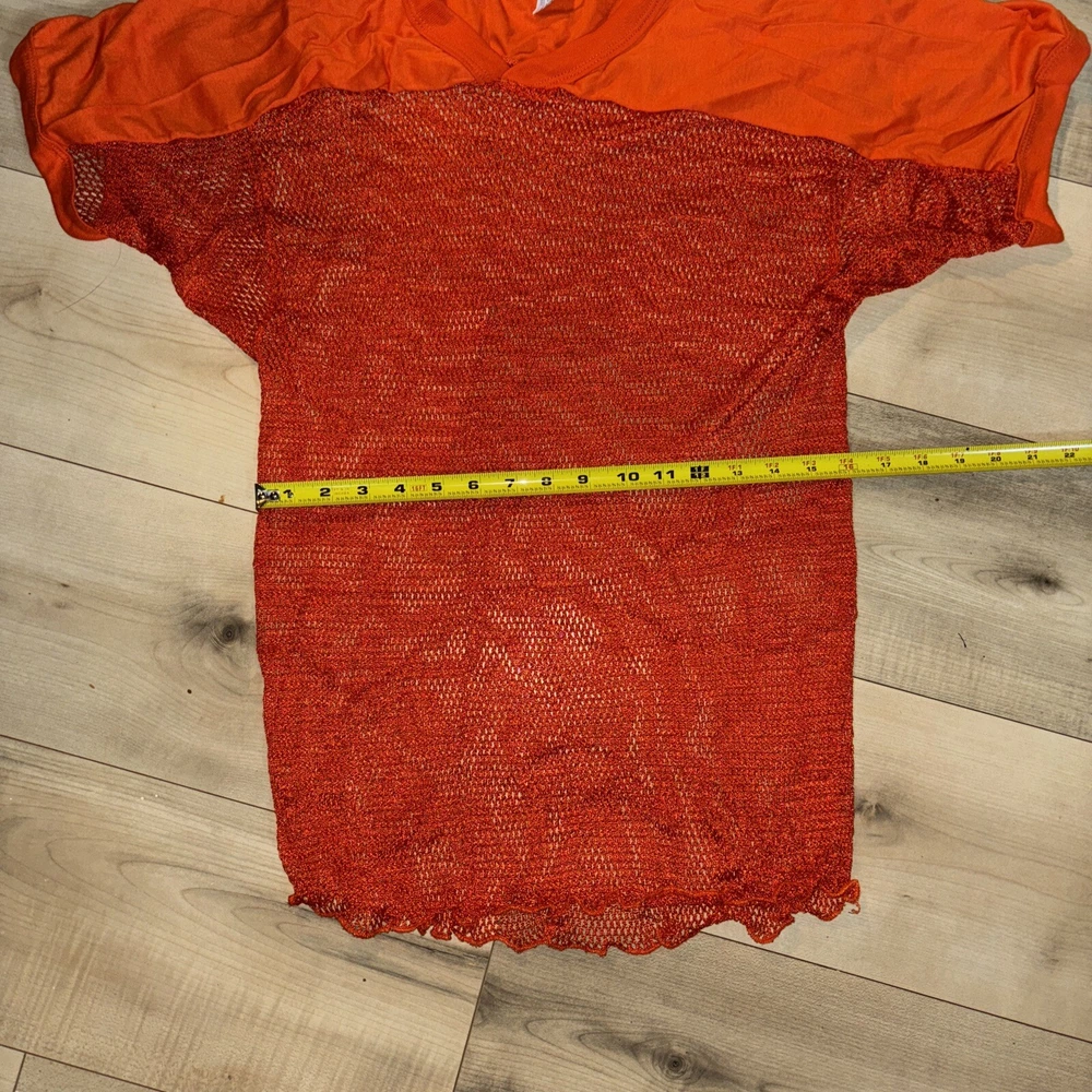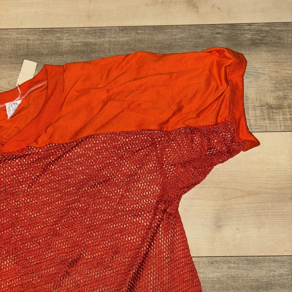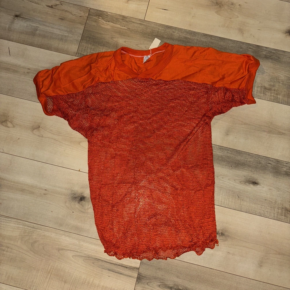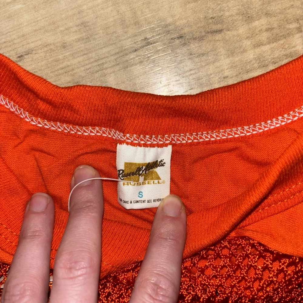 This lot includes 3 vintage Russell Athletic mesh jerseys in size small. These jerseys are perfect for anyone looking to add a retro touch to their wardrobe. Made from high-quality jersey material, these shirts are both comfortable and durable. The orange color adds a pop of color to any outfit. These shirts are perfect for casual wear or for sporting events. Don't miss out on the chance to own these unique and stylish shirts.