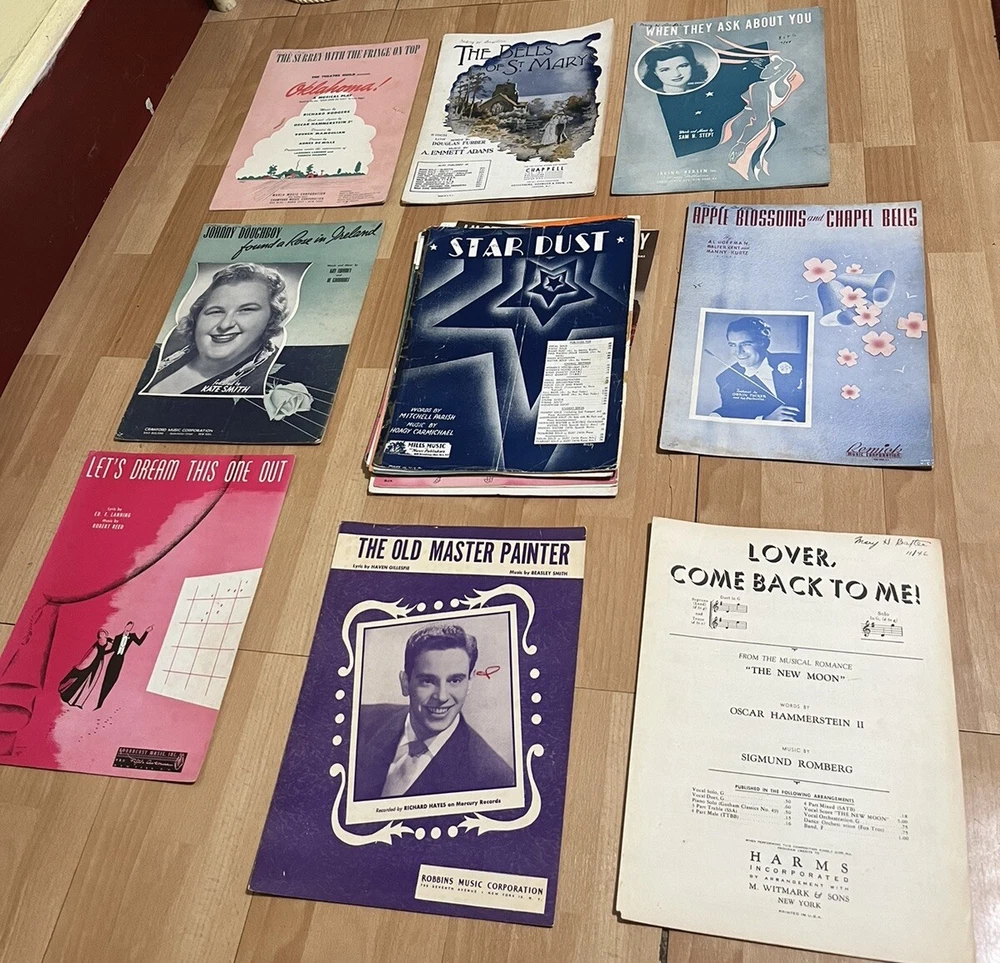 Vintage Antique Sheet Music Lot Of 30 Vintage Antique Sheet Music 1900’s Ephemera They were found in a box during an estate cleanout in upstate New York. The condition varies. I am selling them "as is, as found". They are mostly 12 1/2" long by 9" wide. Discover a treasure (see photos). I am setting a very low opening bid with no reserve . Please ask questions . Message me through eBay messaging. It is the easiest and fastest way for me to respond. International bidders contact me before bidding. Payment PayPal or major credit card through PayPal. Shipping $6.00 shipping with tracking and insurance. All items shipped within 2 business day from time of received payment.