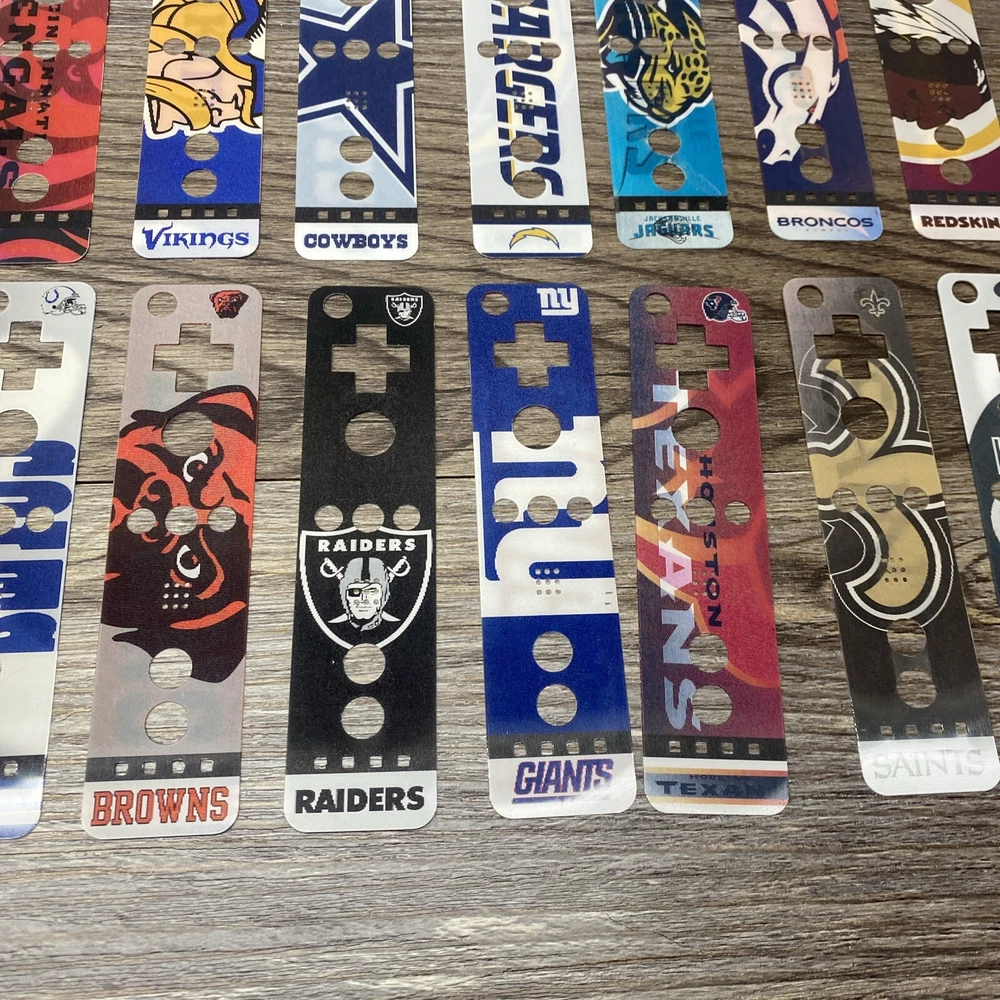 Lot Of 32 Lenticular Football Team Faceplates For Nintendo Wii Remote Lot of 32 faceplates in good condition. They have some marks. Two have some sticker residue on them. I’m assuming these will need some type of cover to keep them on a remote, as well as to keep them protected, but I’m not sure. Please see all photos.