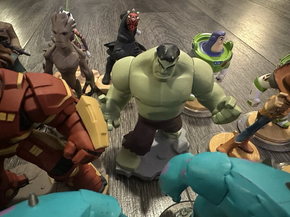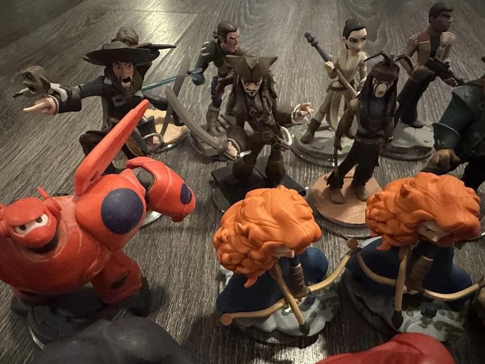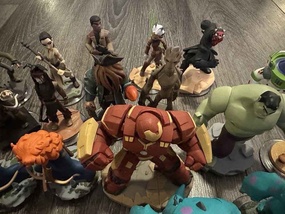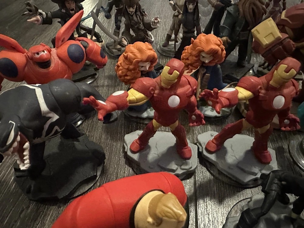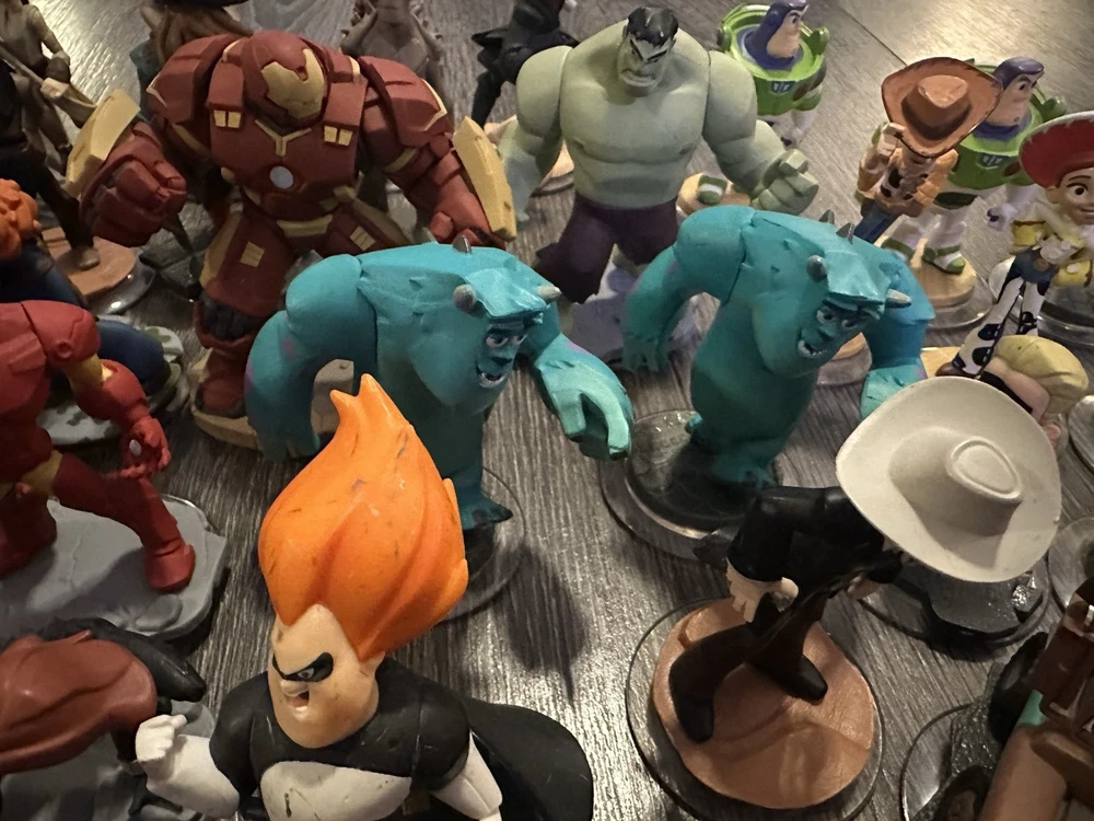 This lot of 39 Disney Infinity figures includes a variety of characters from different universes such as Marvel, Cars, Iron Man, Venom, Toy Story, and Star Wars. Each figure is designed to work with the Disney Infinity video game series and can be used to unlock new levels and special in-game bonuses. The collection features figures from the Disney Infinity product line, which is known for its high-quality designs and attention to detail. Whether you're a fan of the video game series or a collector of Disney-themed toys, this lot of figures is sure to impress.