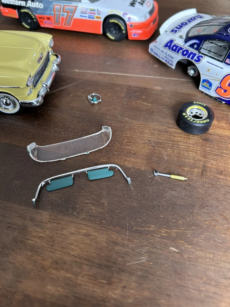 There are exactly 4 total vehicles included in this lot. As you can see the errands 99 vehicle does have a wheel off, but the wheel is included and just needs a bit of repair work to get it back on. There is also a 1955 Bel Air that also needs some more work as well, but the other two vehicles are still in great shape. Also shown normal kind of consistent with age, and are all being sold together, as is and will not be separate payment is your final purchase, and all items are sold as. No return accepted and all items are being sold together