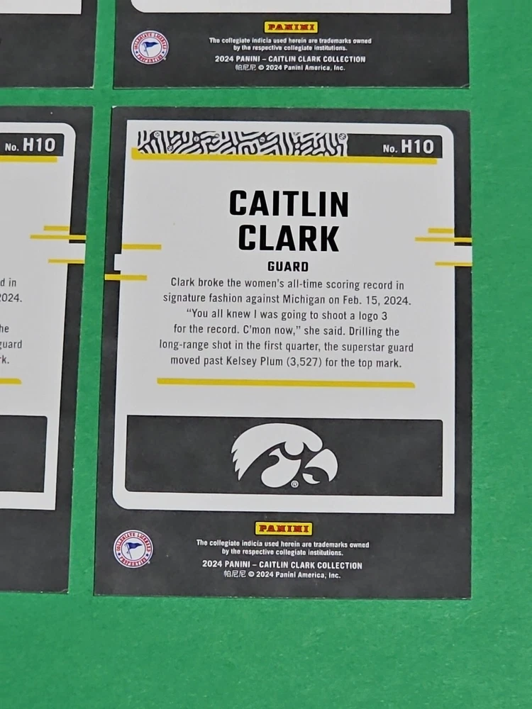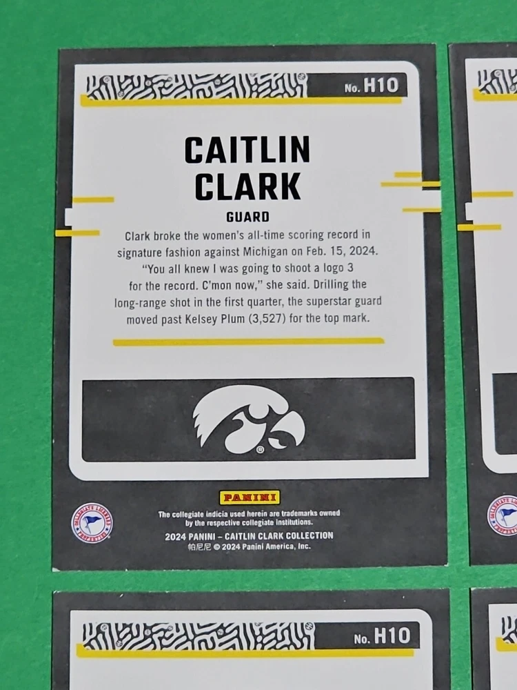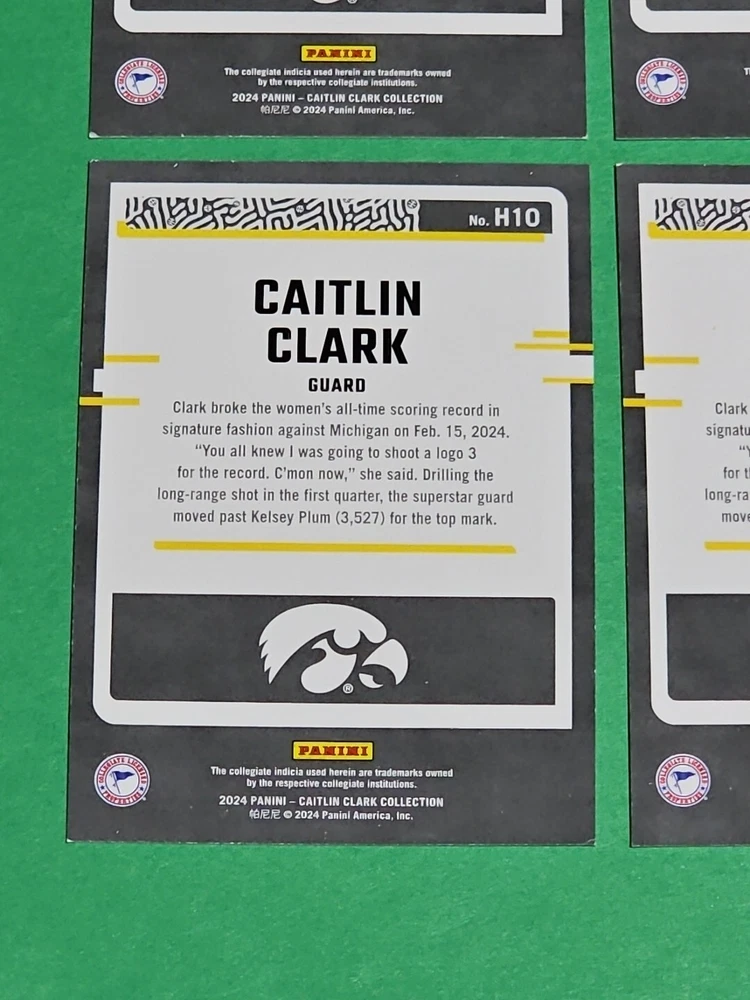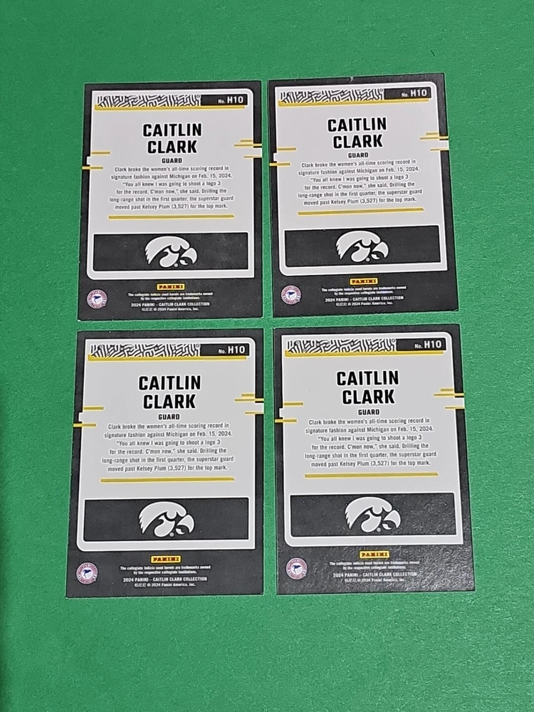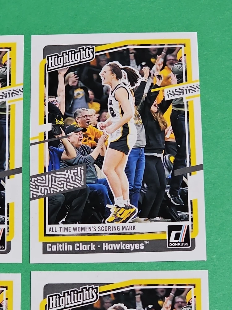 You will receive the exact cards pictured. This Lot of 4 Caitlin Clark Rookie 2024 Panini Donruss Highlights Iowa Hawkeyes Cards No. H10. Pay only $1.50 for shipping on your first cards won & 50 cents per lot of cards won in auctions up to $5.00. $5.00 is the maximum shipping you will pay, no matter how many cards you win! Please wait until you are done with all your purchases and I will send a combined shipping invoice within 24 hours. Please check out all of my other great auctions going on now! I have several Caitlin Clark Auctions going on now! Thanks for looking & good luck!!