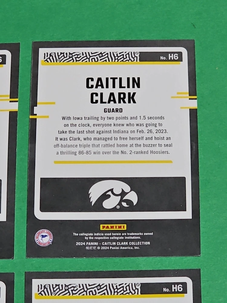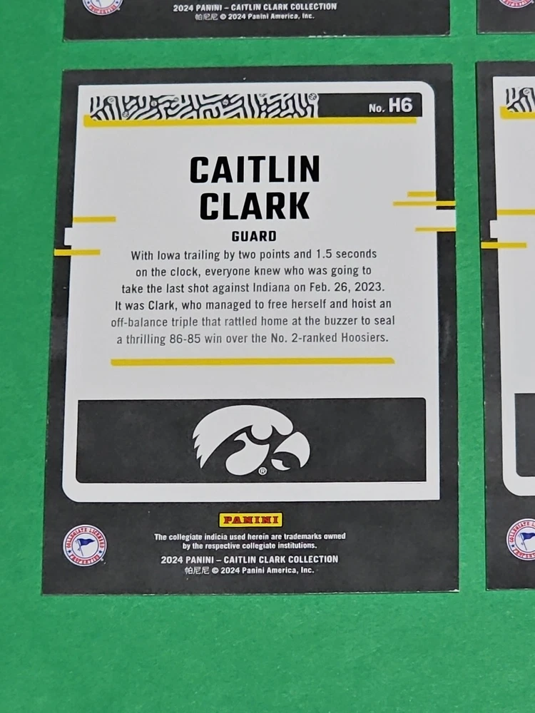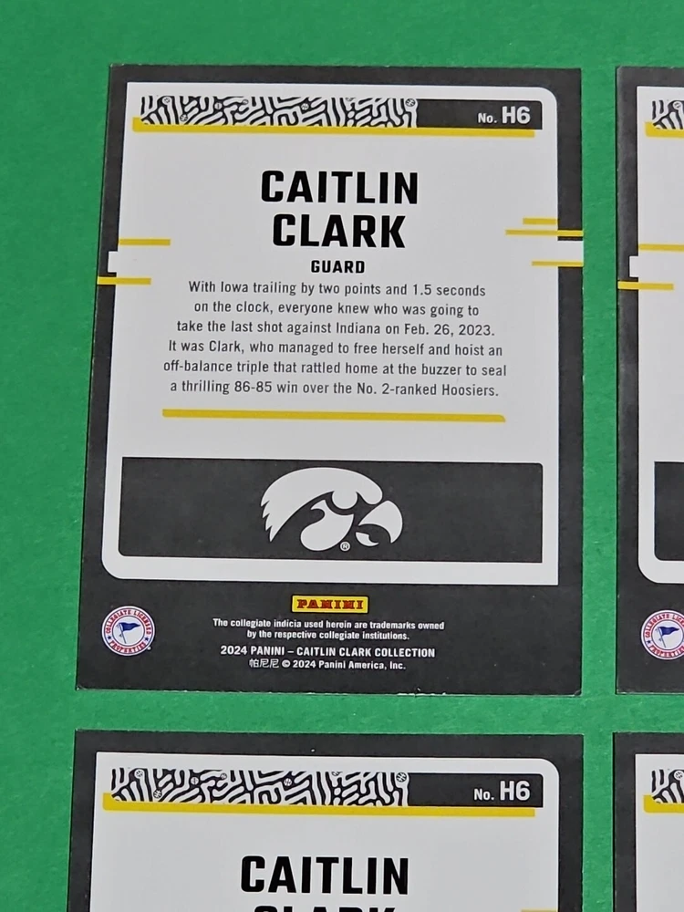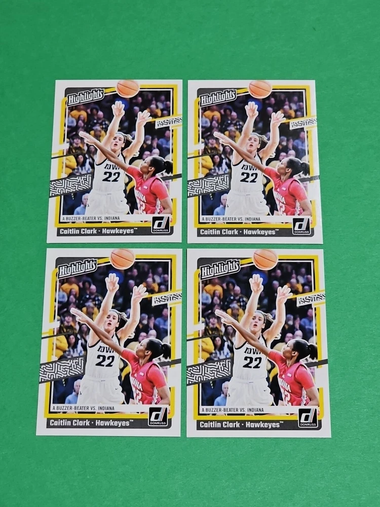 You will receive the exact cards pictured. This Lot of 4 Caitlin Clark Rookie 2024 Panini Donruss Highlights Iowa Hawkeyes Cards No. H6. Pay only $1.50 for shipping on your first cards won & 50 cents per lot of cards won in auctions up to $5.00. $5.00 is the maximum shipping you will pay, no matter how many cards you win! Please wait until you are done with all your purchases and I will send a combined shipping invoice within 24 hours. Please check out all of my other great auctions going on now! I have several Caitlin Clark Auctions going on now! Thanks for looking & good luck!!