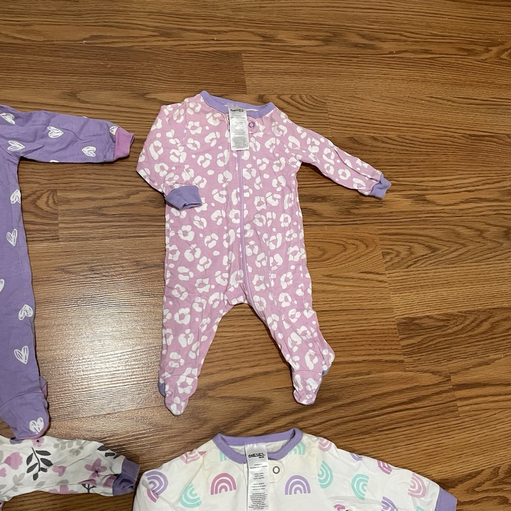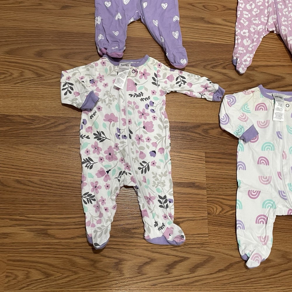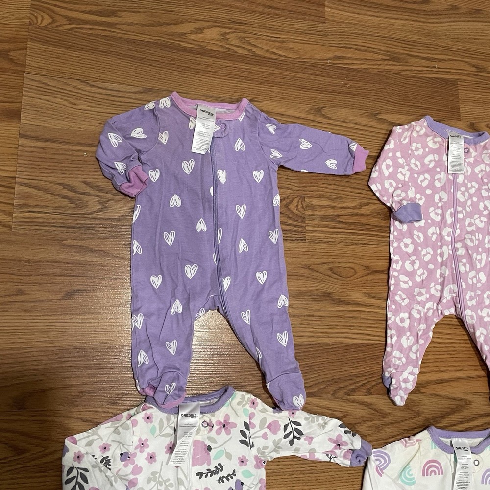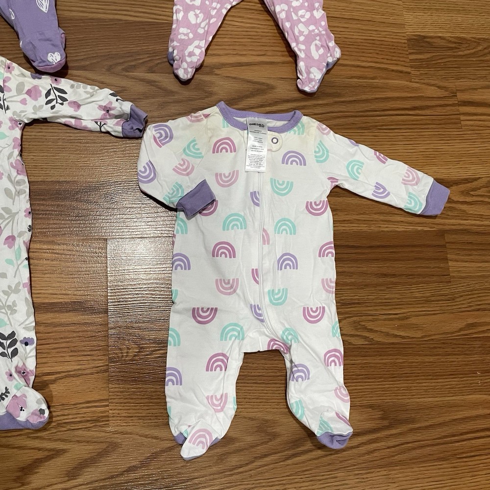 Lot Of 4 Girls Footed Pajamas Hearts, Rainbow & Floral Print Sz Newborn