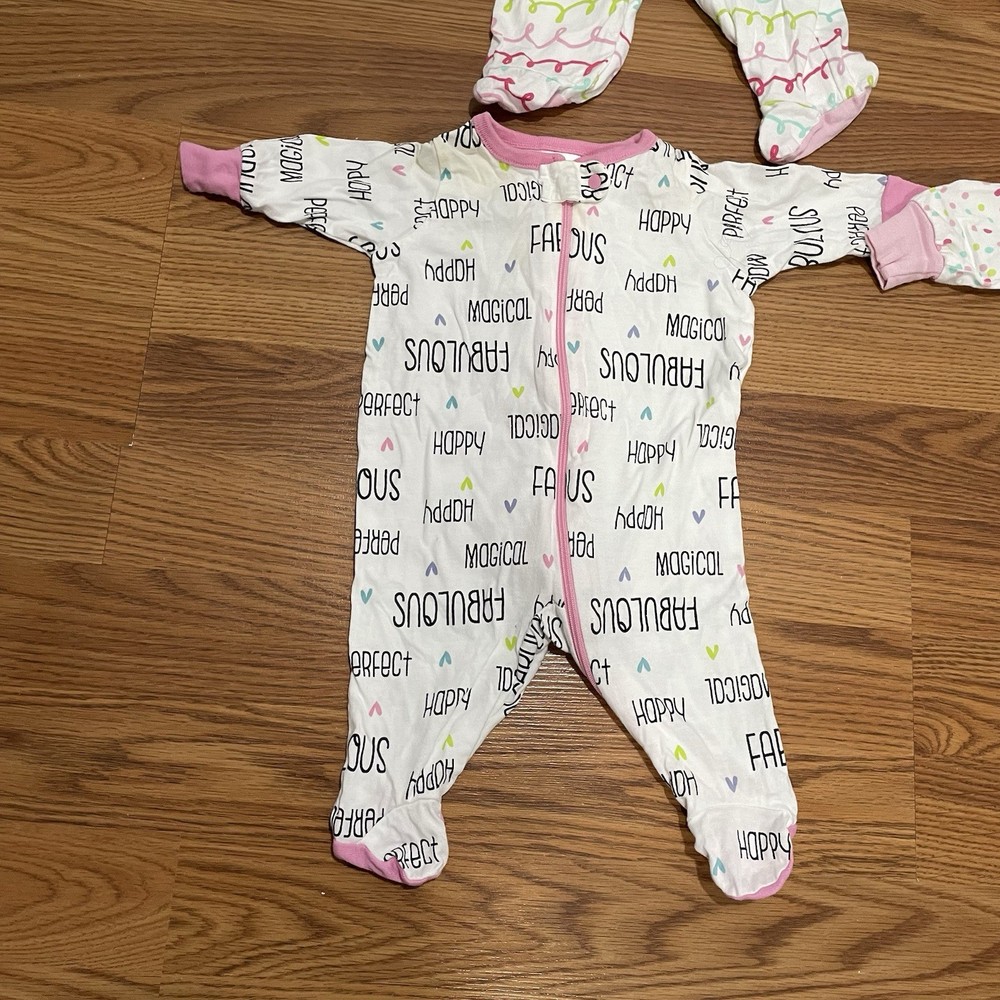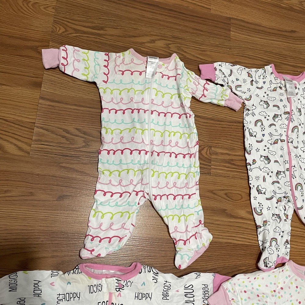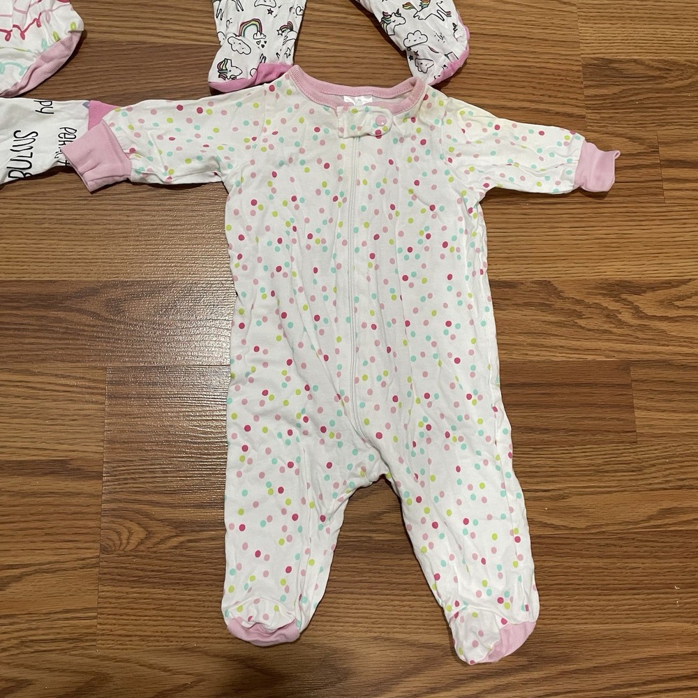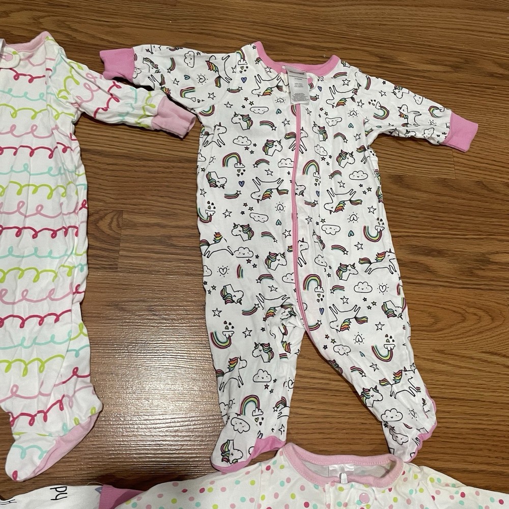Lot Of 4 Girls Footed Pajams Dotted, Unicorn, Multicolor Sz Newborn