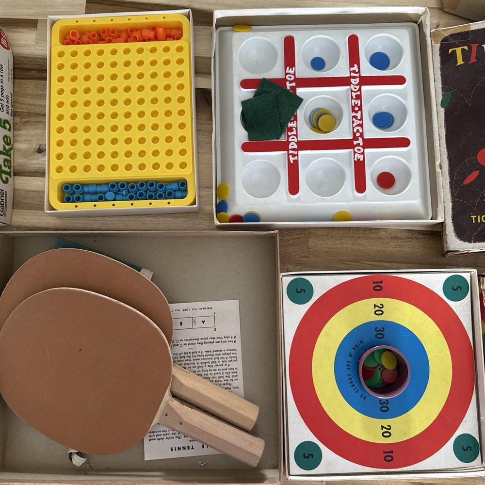 Lot Of 4 Vintages Board Games Table Tennis Toddlers Toe Take 5 Tiddly Winks