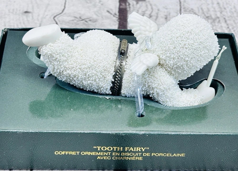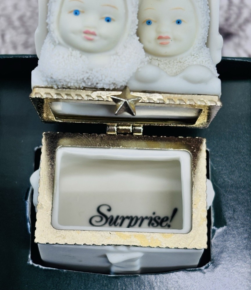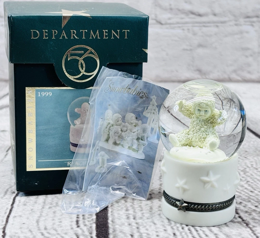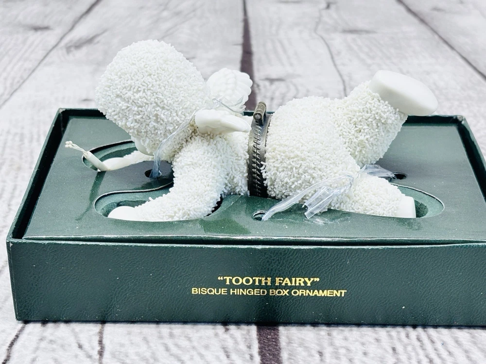 Lot Of 5 Department 56 Snowbabies Hinged Boxes Pins Snow Globe 1997 1998 1999 This lot features five original Department 56 Snowbabies collectibles, all in mint condition with original packaging. Figurines appear never displayed, with pins and hinged boxes still secured in place. Boxes show storage wear but contents remain pristine. •Snowbabies “Surprise” Bisque Porcelain Hinged Box •Snowbabies “Tooth Fairy” Bisque Hinged Box Ornament (tied down, never removed) •Snowbabies 1999 “Reach Out” Snow Globe with original styrofoam packaging •Snowbabies Winter Celebration 1998 Bisque Friendship Pin •Snowbabies Journey Celebration 1987–1997 Bisque Friendship Pin Beautifully detailed bisque porcelain pieces, perfect for collectors or as charming holiday décor. Rare opportunity to find multiple hinged boxes, pins, and a snow globe together in one lot. Ships securely with care.