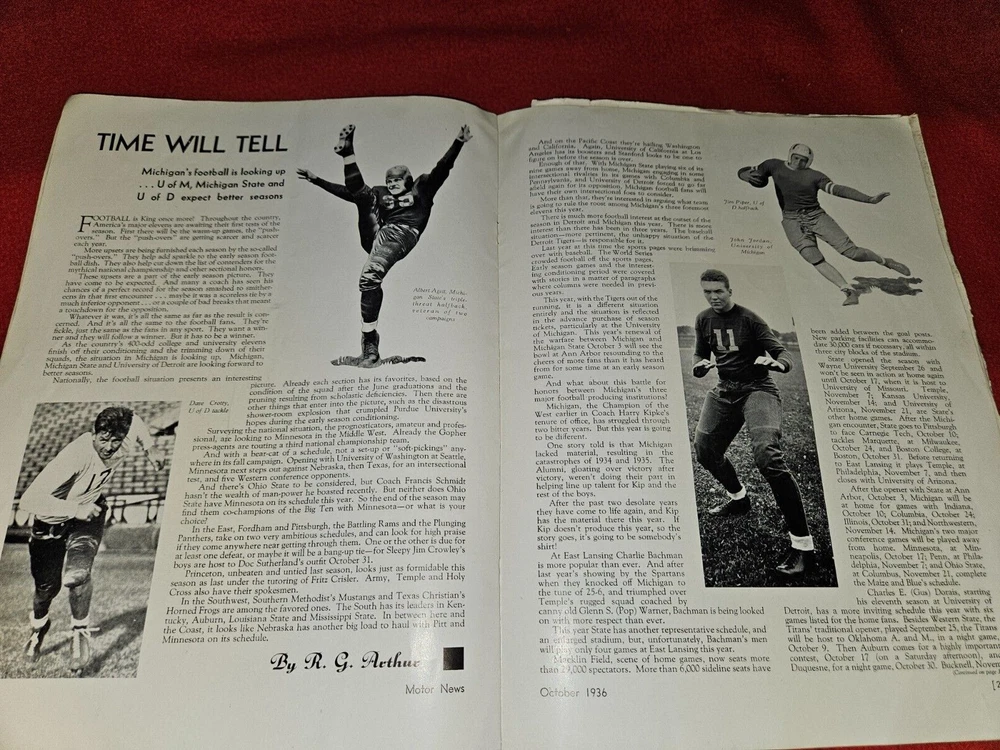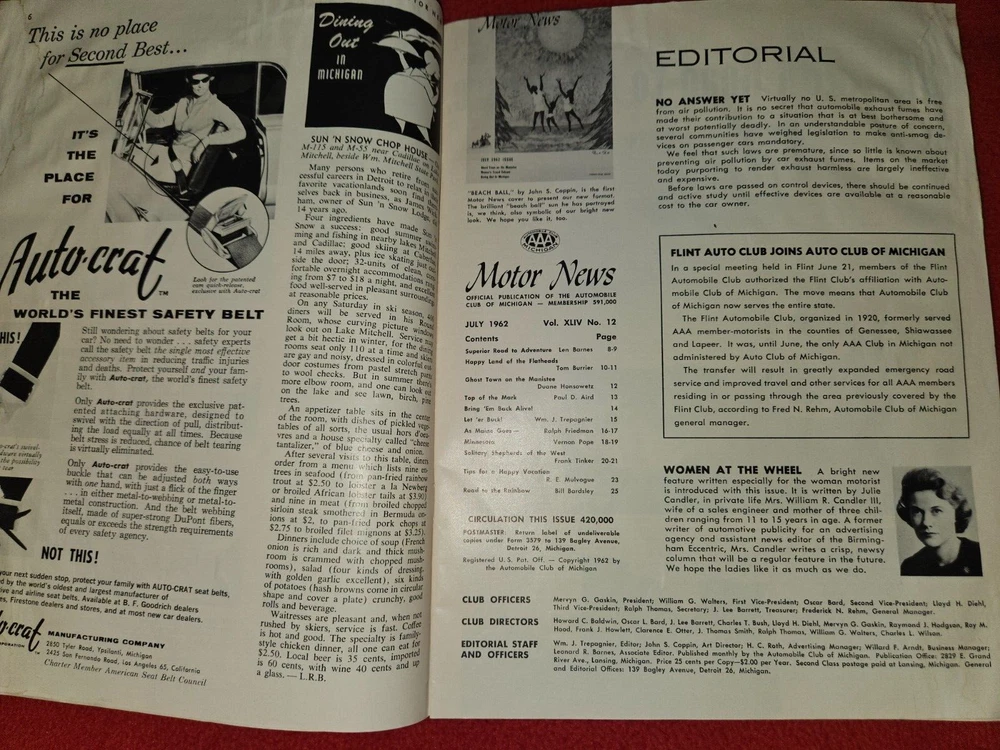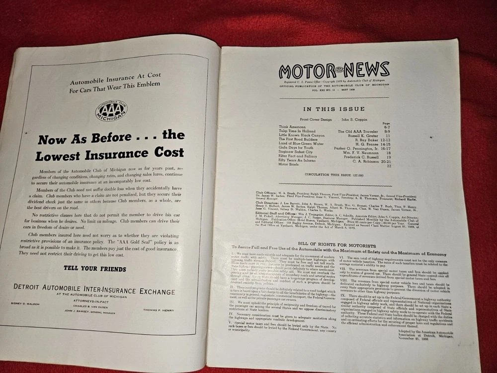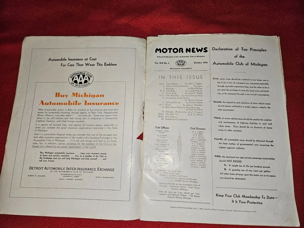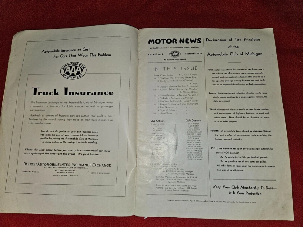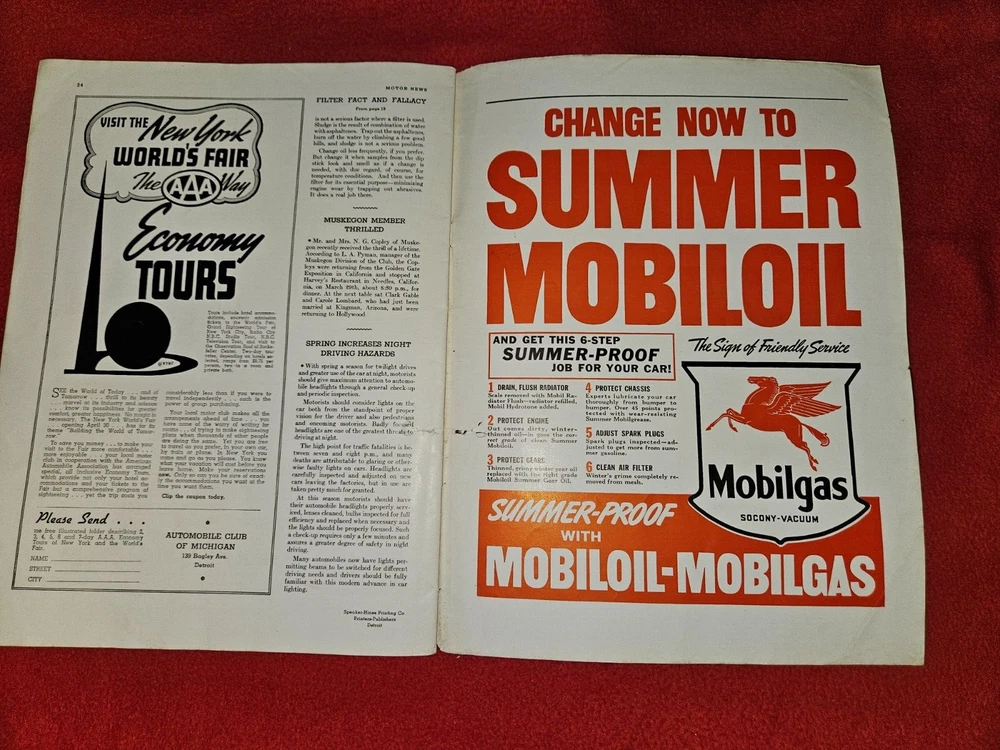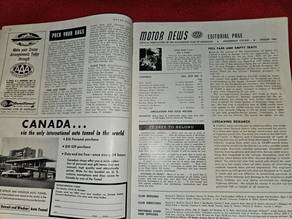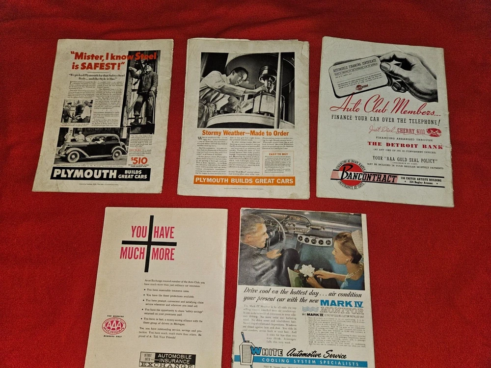 Here are five vintage magazines from the years Two from 1936, 1939, 1961, 1962, and . These magazines are all about motor news and include articles and stories about traveling in the United States and an emphasis on Michigan and it's history. They are a great addition to any collection and are perfect for anyone who loves classic cars or automobile advertising. The topics covered in these magazines are vast and varied, making them a great resource for anyone interested in the subject. Add them to your collection today!The 1962 issue has some water damage Please look at all photos