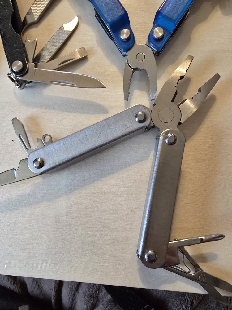 This product is a set of 5 small folding EDC multi-tools pliers, perfect for fishing, hunting, or hiking adventures. Each tool features a stainless steel blade with a straight edge, ensuring durability and reliability. The multi-tool pliers come in various colors and are from various brands, making them versatile and convenient for any outdoor activity. Whether you're a avid angler, hunter, or hiker, these compact and practical tools are a must-have for your pocket or backpack.