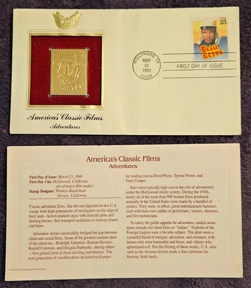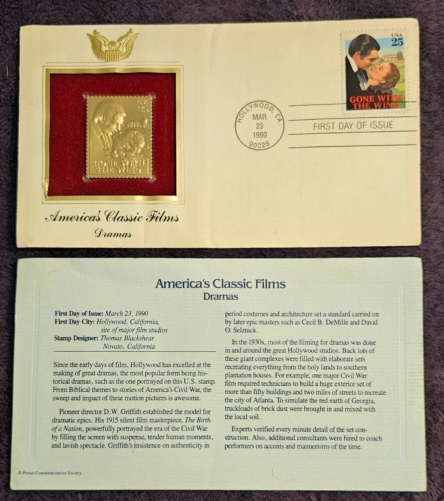 This lot of U.S. stamp collectibles includes a variety of unique items featuring aviation, American classic films, and wildlife. The collection includes stamps from the Postal Commemorative Society, with a denomination of 24 cent, 22 cent, and 25 cent. These stamps were issued between 1911-1920 and 1981-1990 in the United States, and are of mint quality with hinged backs. In addition to the stamps, this lot includes First Day of Issue cancellation types and an information card for each stamp, except for the "Wildlife stamp". The items are ungraded and uncertified, but are a great addition to any stamp collection. Browse through the categories of Collections, Lots, United States, and Stamps to find more unique and interesting pieces.