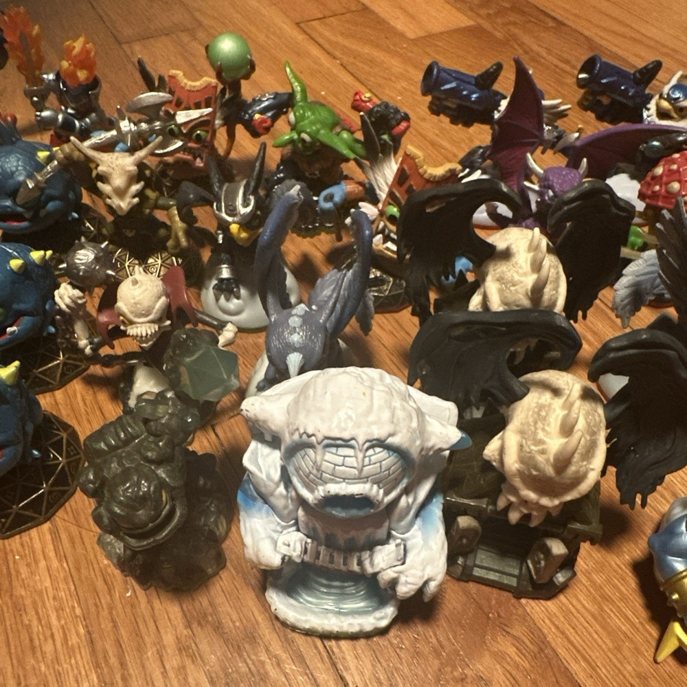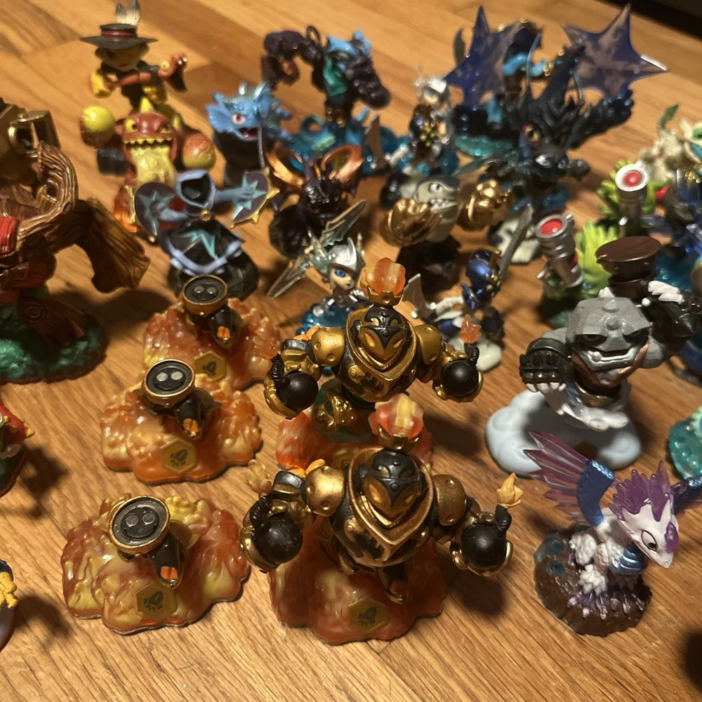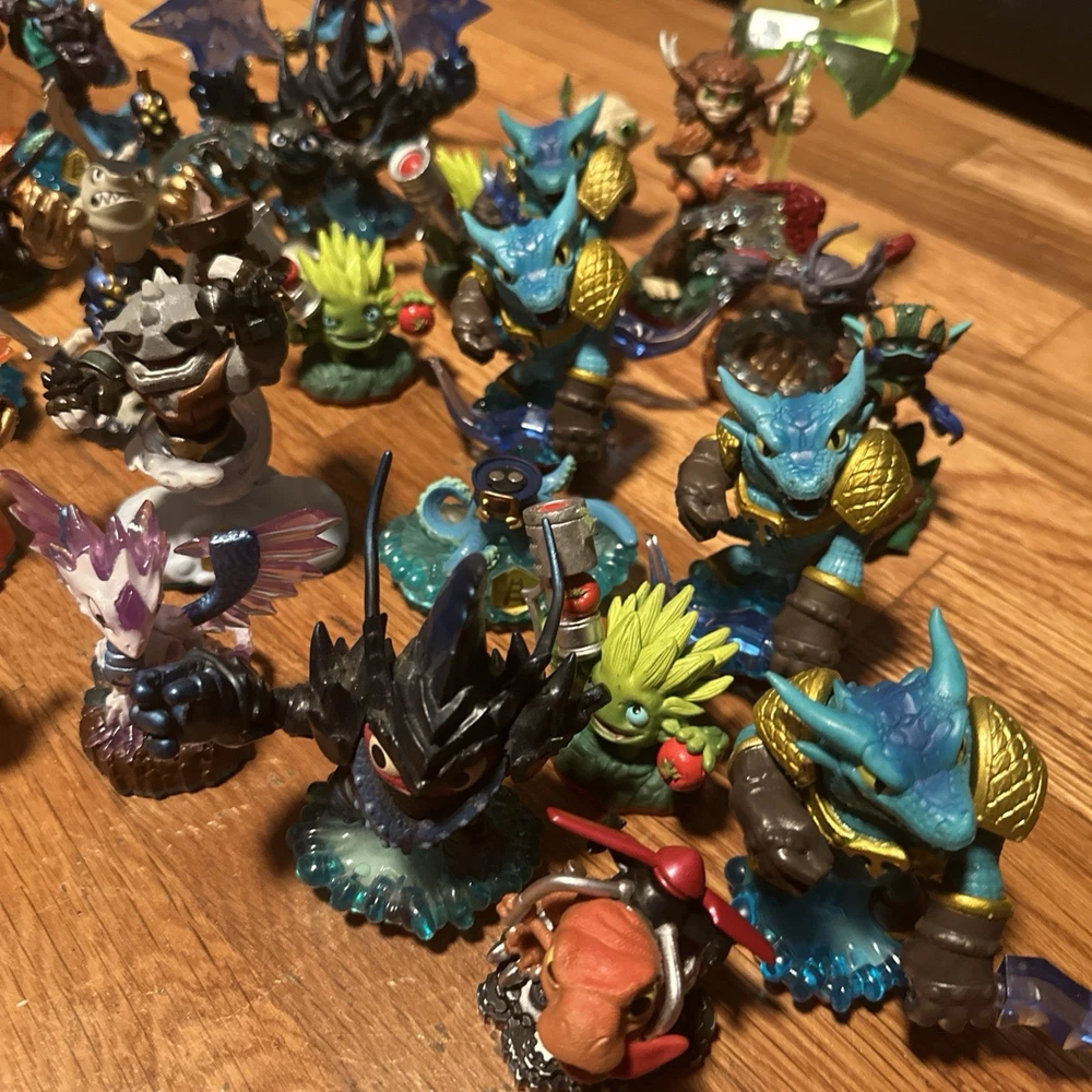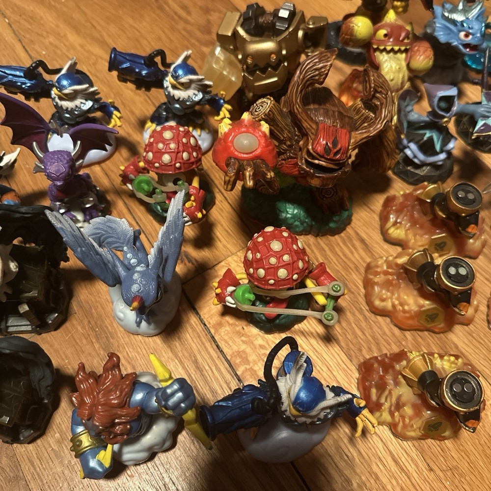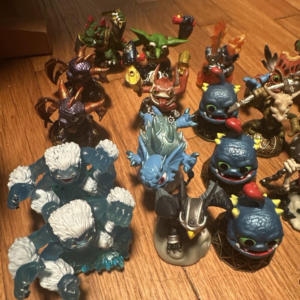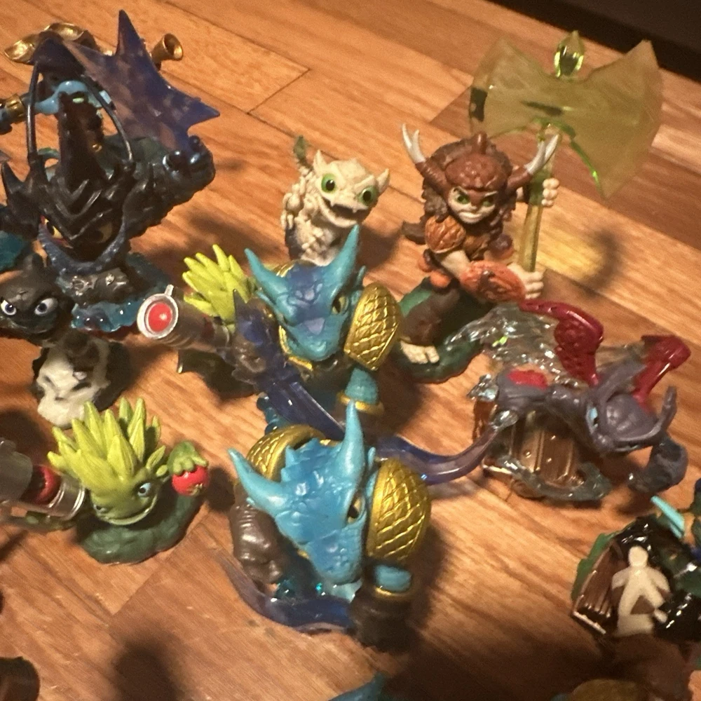 See photos for included figures. These have been played with and used; a few figures are missing limbs (Prism Break and the robot are missing an arm, can’t remember his name). There are also duplicates. 4 of the swap force figures are just the bottom halves.